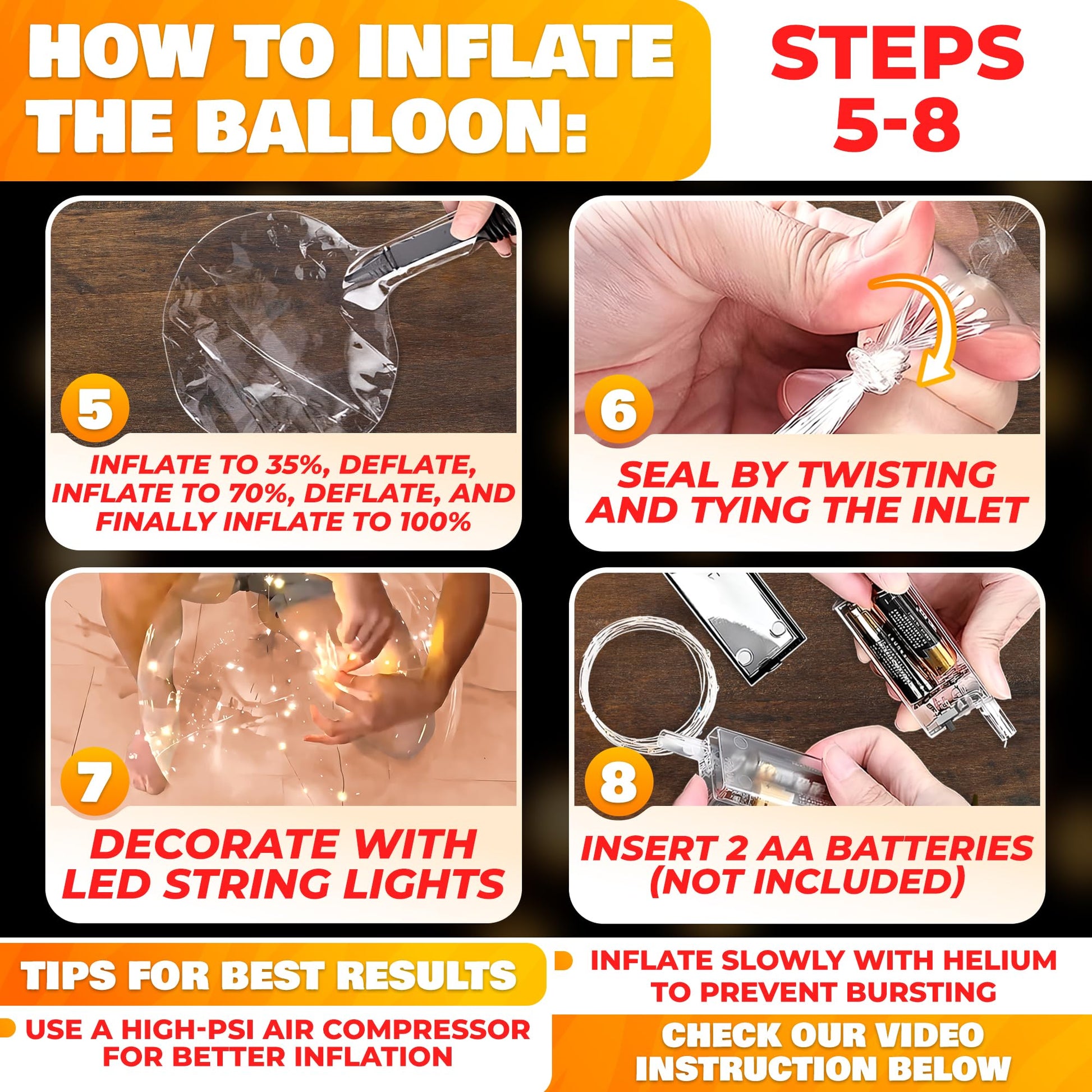 - Universal Clear Bubble Balloons: These bobo balloons with lights inside are widely used as giant glowing balloons for birthdays, outdoor balloons, prom balloons, bachelorette party games & Mothers Day gifts