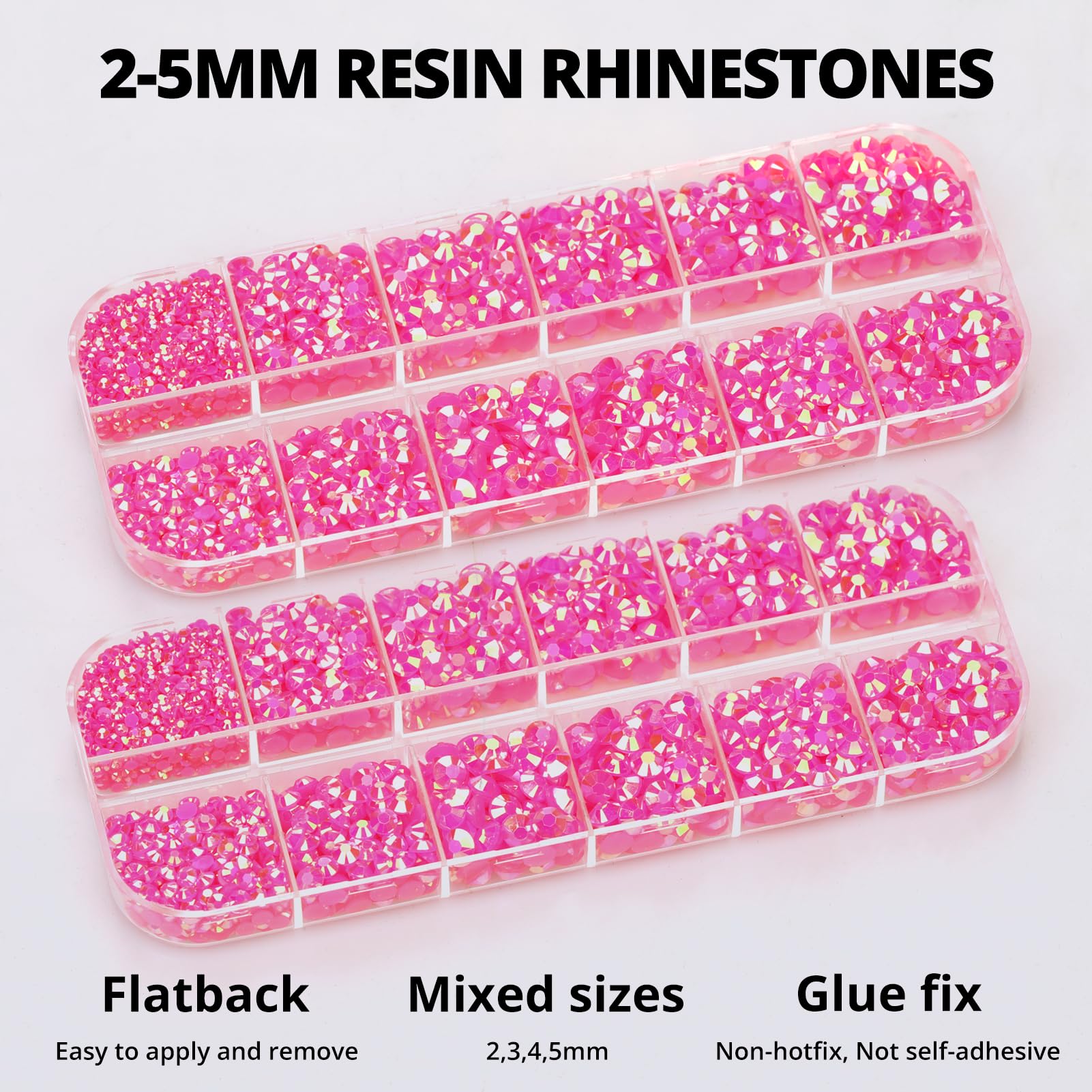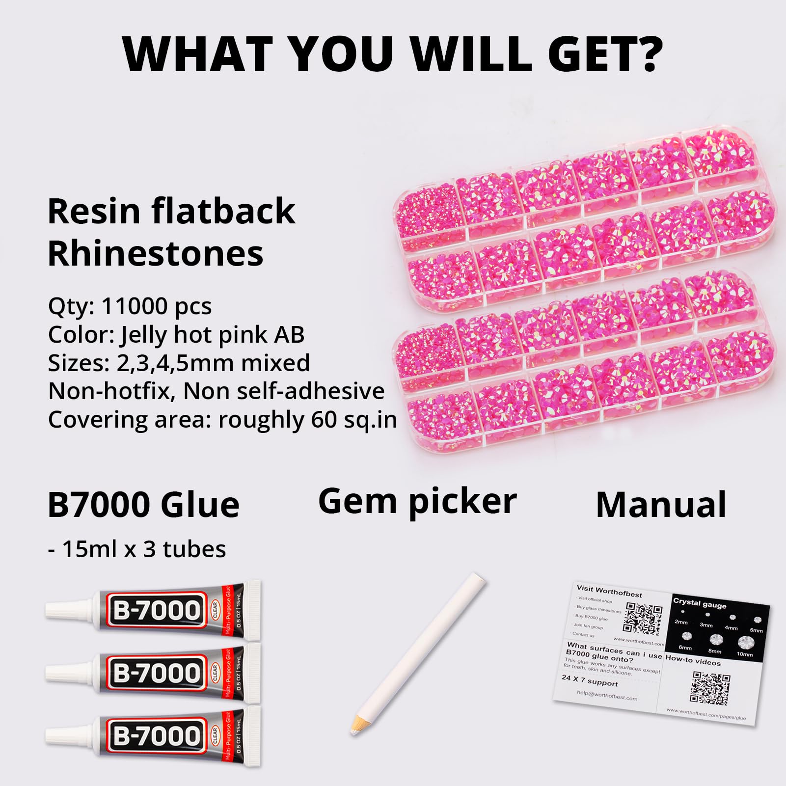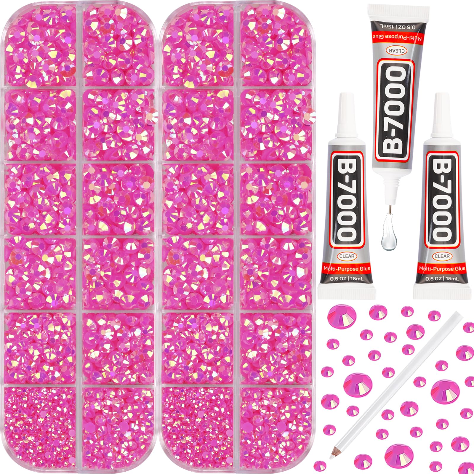 11000Pcs Jelly Hot Pink AB Rhinestones with b7000 Glue for Crafts Clothing Clothes Fabric Tumblers, Bright Pink Gems Resin Flatback Rhinestones for Shoes Nails, Flat Back Bedazzler Kit ss 6-ss 20