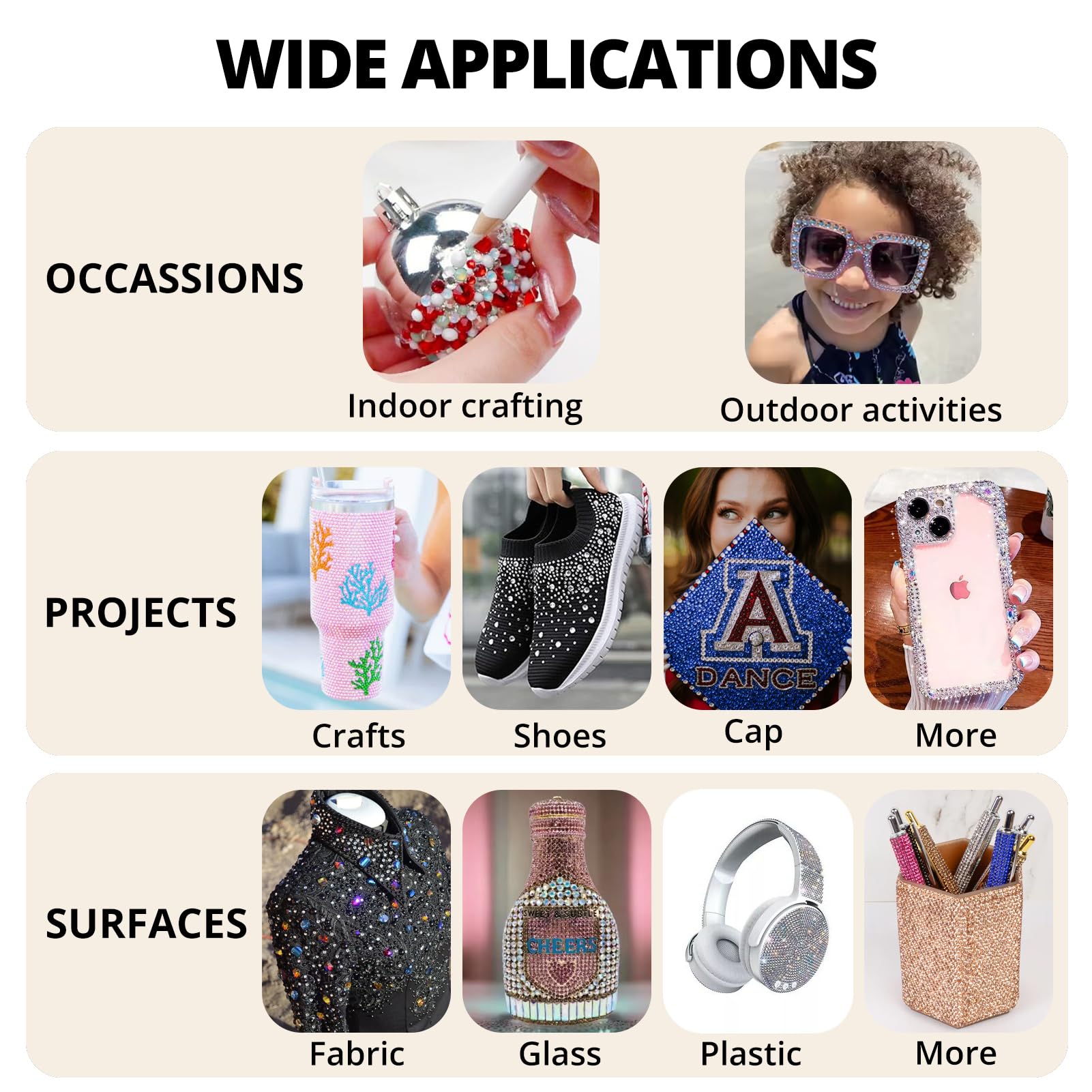 Details: AB hot pink crystals and diamonds iridescent rose bright pink rhinestones flatback with B7000 gem glue kit comes with assorted sizes of resin gems for crafts, 11000pcs rhinestones, perfect for bling out and decorating craft and fabric projects, such as clothes, clothing, tumblers, DIY Graduation Cap, phone cases, nails art, sneakers, shoes, earring jewelry marking, bows, cups, bags, greeting cards, glass, paper, ceramics, wood, leather, household uses, tablets, plastic, paper, hats, handbags, gel pen, diamond pen, patches fabric for backpacks, PVC and other crafts repair purposes, adding brilliance and charm to your various decorations.