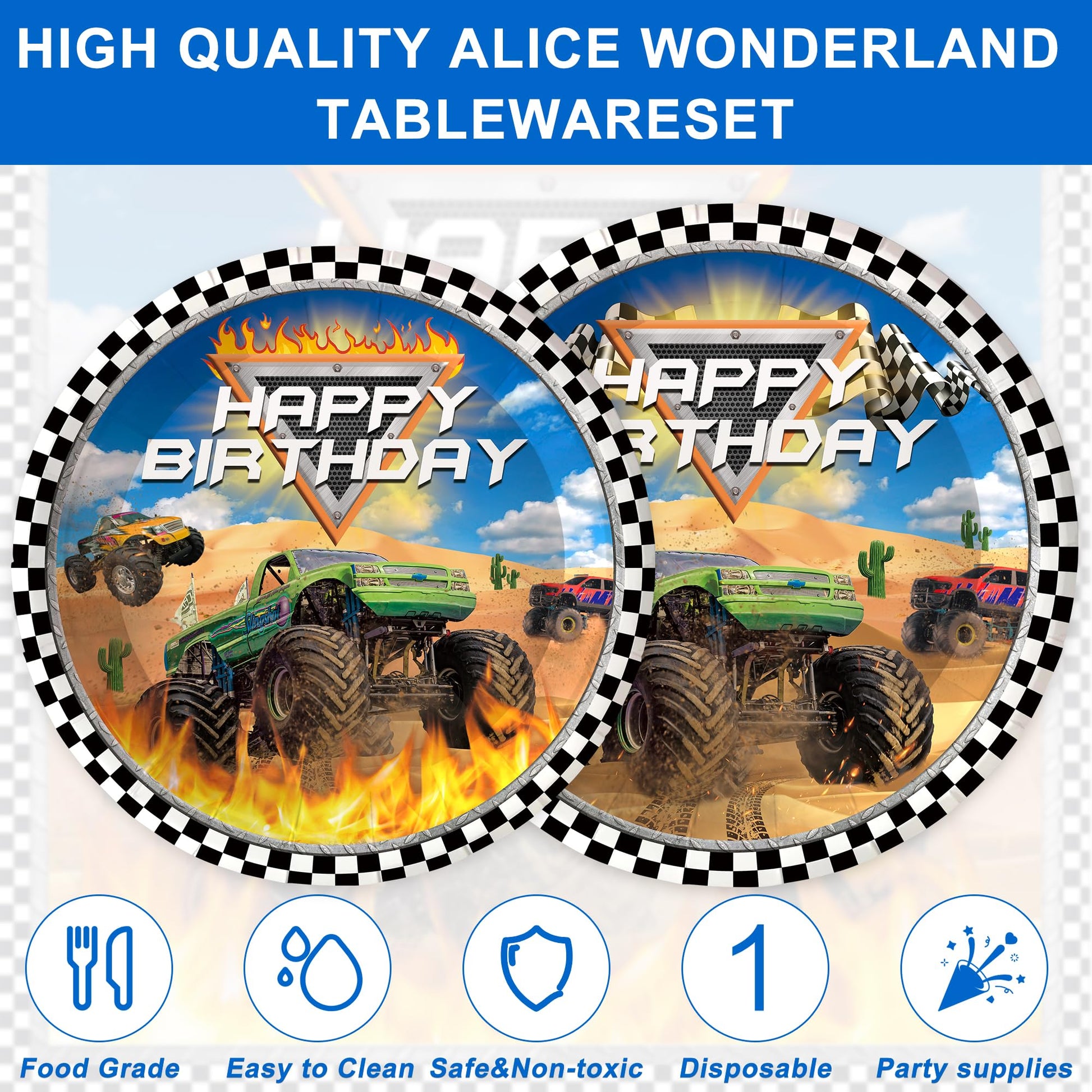 - 【Wide Range of Applications】This Monster Truck themed party tableware set is the perfect addition to your birthday party and it will match any of your other party decorations. There are perfect for boys parties, birthday parties, indoor and outdoor events, arts and crafts projects, holiday decorations, home use, table decorations and any other celebration.