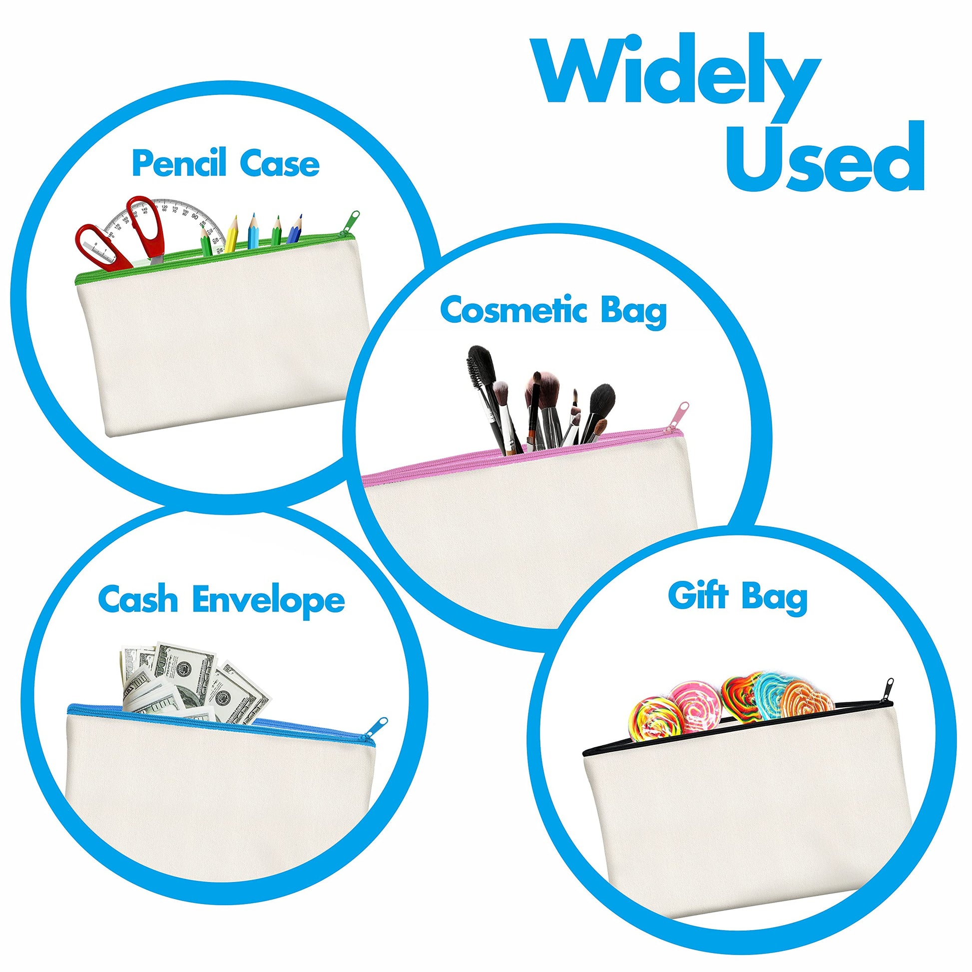 - Design You Like: The blank exterior allows for DIY, the fabric paint, vinyl heat transfer are good choices to design unique pattern. With the help of pins, embroidery patches, cloth markers, your own personalized makeup bag will be created.