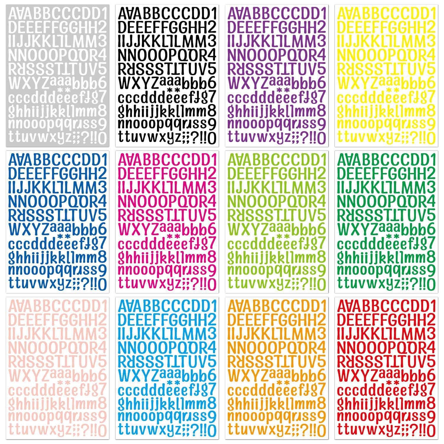 - Package includes 12 sheets with 1512 vinyl alphabet, number and symbol stickers in 12 colors for crafts and decor