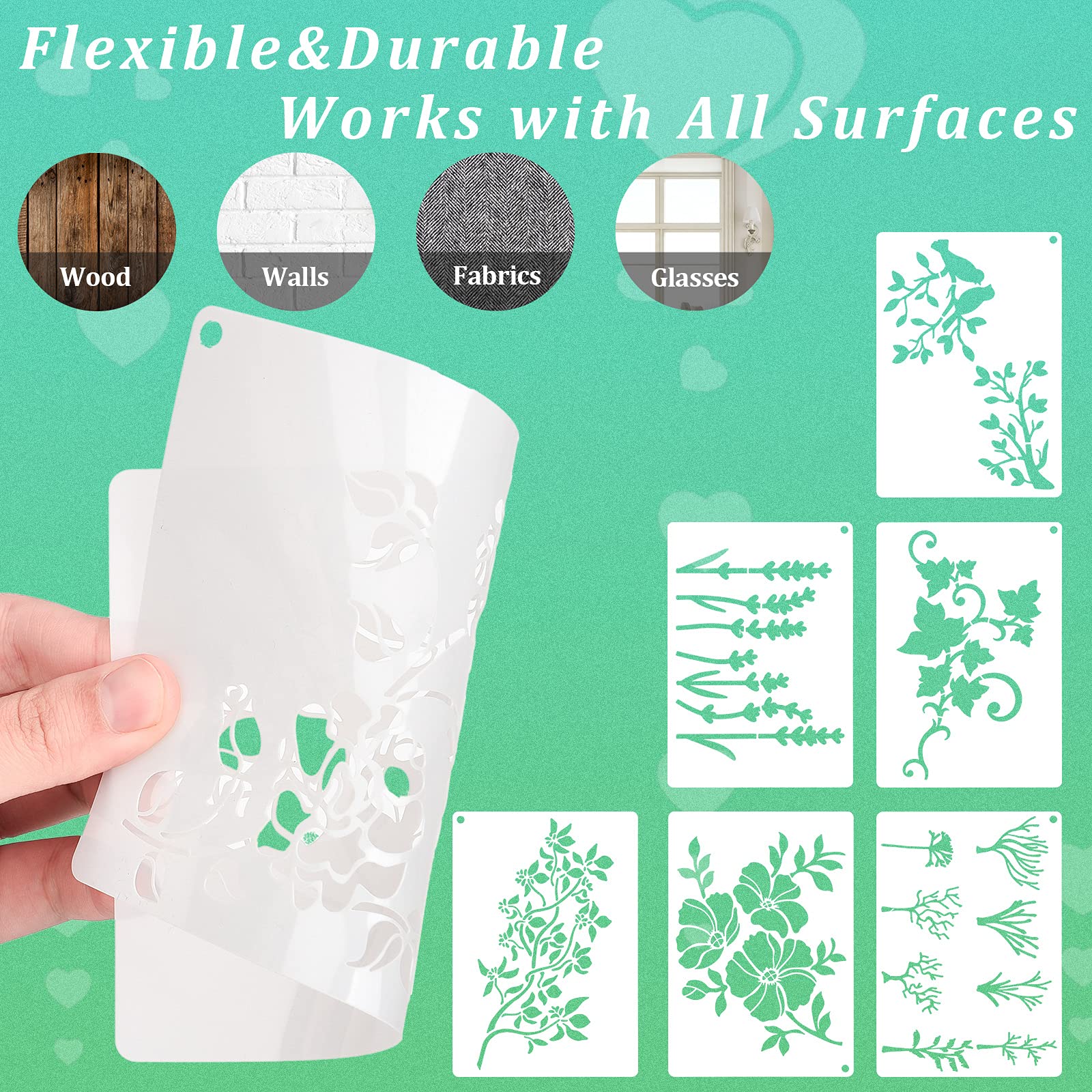 Each stencil for flowers measure about 5.91 x 4.72 inches for each, a suitable size for you to carry outdoors, you can put them easily in your handbags, backpacks, purses, camping bags, shopping bags, crafts bags and more, enabling you to make beautiful crafts painting in your office or classroom when you have spare time.