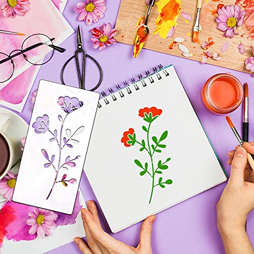 18Pcs Wildflower Stencils Flower Leaf Painting Stencils Reusable Wild Flower Stencil Plastic Art Drawing Templates DIY Crafts Plant Stencil for Painting on Wood Wall Door Canvas Home Decor