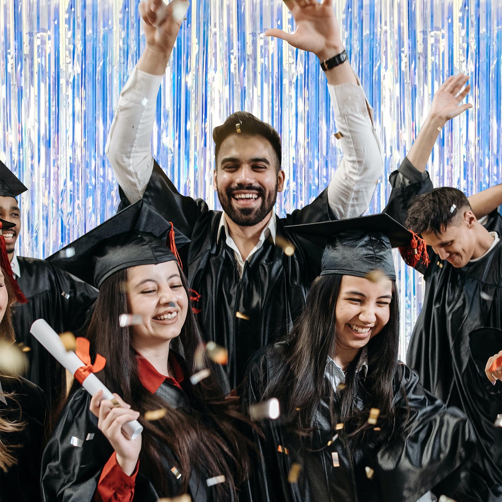 - Celebration Party Decorations: You can use this shiny gorgeous tinsel foil fringe background to decorate your celebration party. Hang them on a carpeted end or wall as a backdrop,or it could be one entrance to the party. You can paired with an LED light, balloons, banners and various photo props on this backdrop. All the guests who come to bless you will feel your love and beauty and was remembered for having a great party!