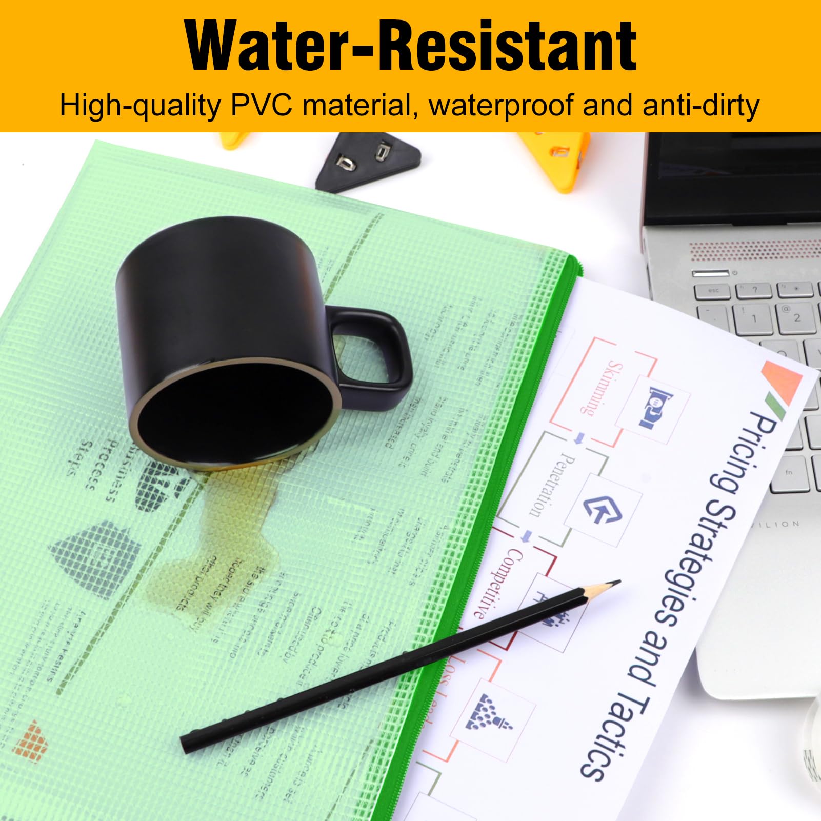 - HIGH-QUALITY MATERIAL: These mesh bags with zippers are made of PVC, are safe and durable, contents without worrying about being splashed with water. Protect your files from moisture, keep them flat and clear. Upgraded zipper, better quality