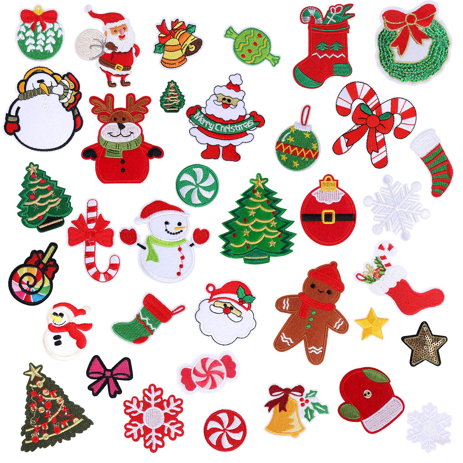 36pcs Christmas Iron on Patches Embroidered Sew Applique Repair Patch for Craft, Clothing, Decoration and DIY Christmas Gifts