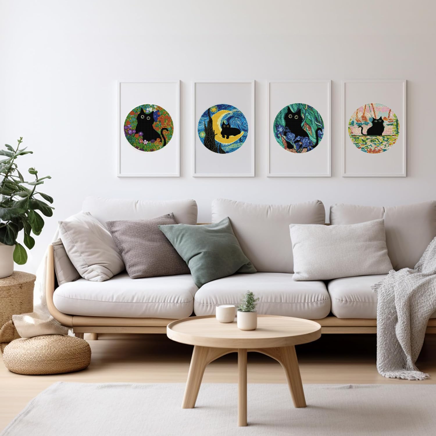 4 Pack Stamped Cross Stitch Kits with Frame - Black Cat Flower Starry Sky Moon Embroidery Kits for Beginners Adults,11 CT Patterns Dimensions Counted Cross Stitch Kits Arts Craft Kits 7.8 x 7.8 inch