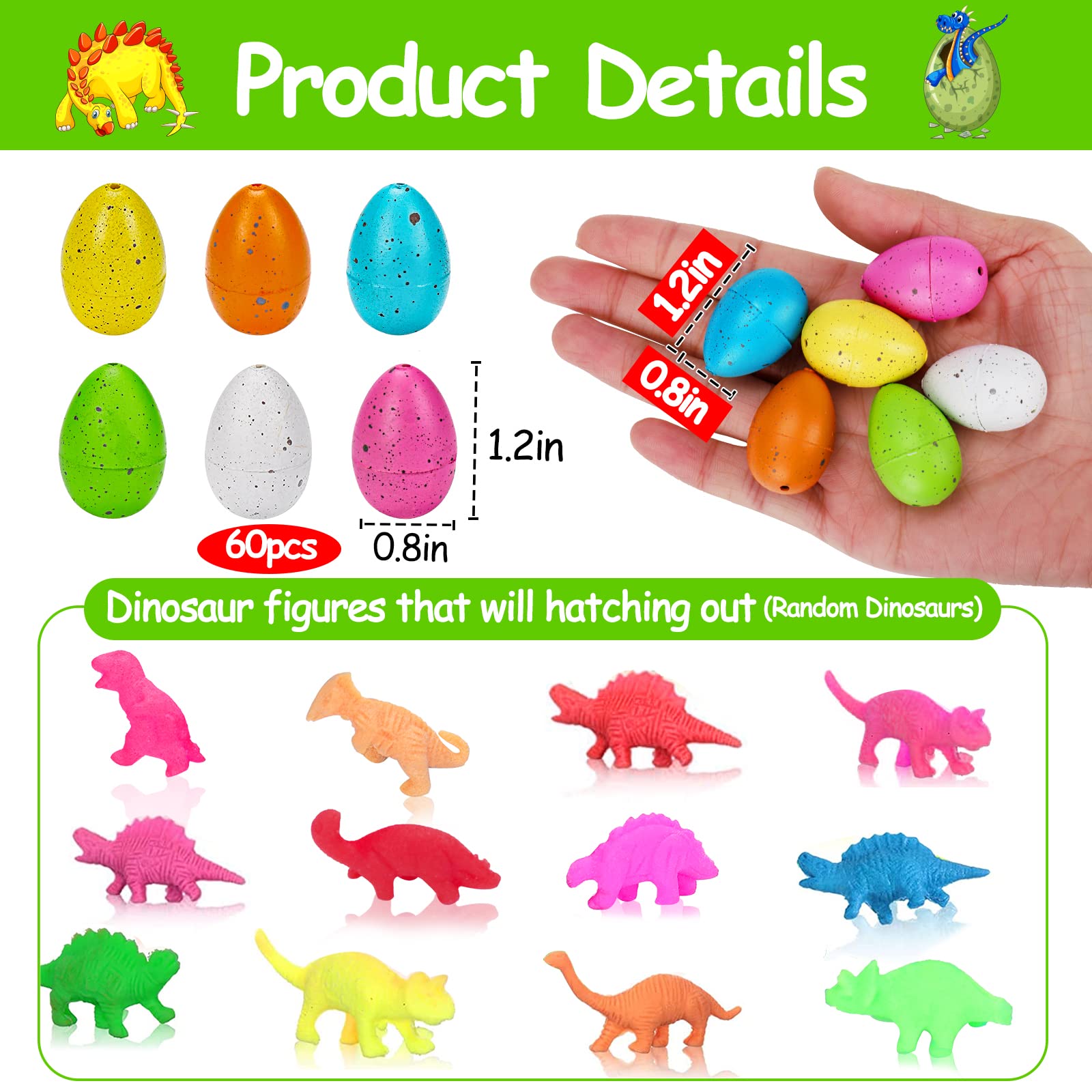 60PCS Small Hatching Dinosaur Eggs for Dinosaur Party Favors Birthday Goodie Treat Bag Stuffers Classroom Carnival Prizes Box Toys Bulk Pinata Fillers Novelty Grow in Water Dino Eggs with Toys Inside