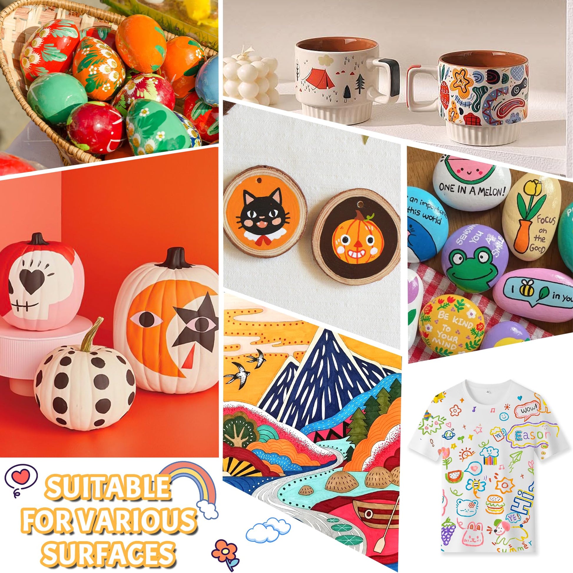 - Versatile Surface Compatibility: These acrylic markers perform flawlessly on a variety of surfaces, including rocks, fabric, metal, glass, wood, canvas, ceramic, plastic, and more. Whether you're working on intricate details or bold designs, they provide smooth, consistent coverage every time, allowing you to unleash your creativity on any medium