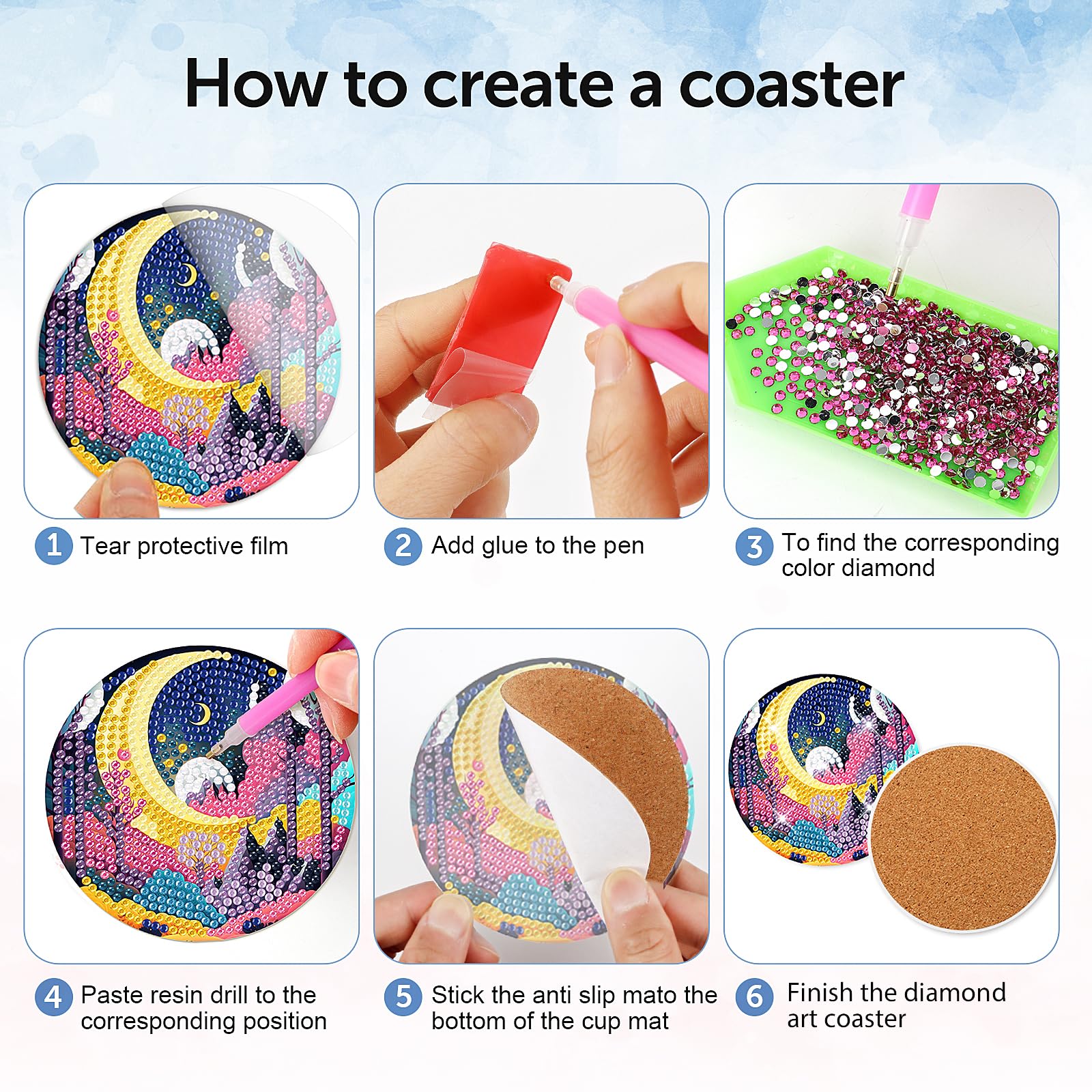- 【Package Includes】Diamond Art Coaster x 8, Cork Pad x 8, Coaster Holder x 1, Clay Glue x 1, Pen x 1, Diamond Tray x 1, Enough Fancy Colorful Diamond.DIY diamond Art can improve hands-on ability, reduce stress and ease emotions, experience a sense of accomplishment, enhance self-confidence and cultivate patience, suitable for adults, the elderly and children.