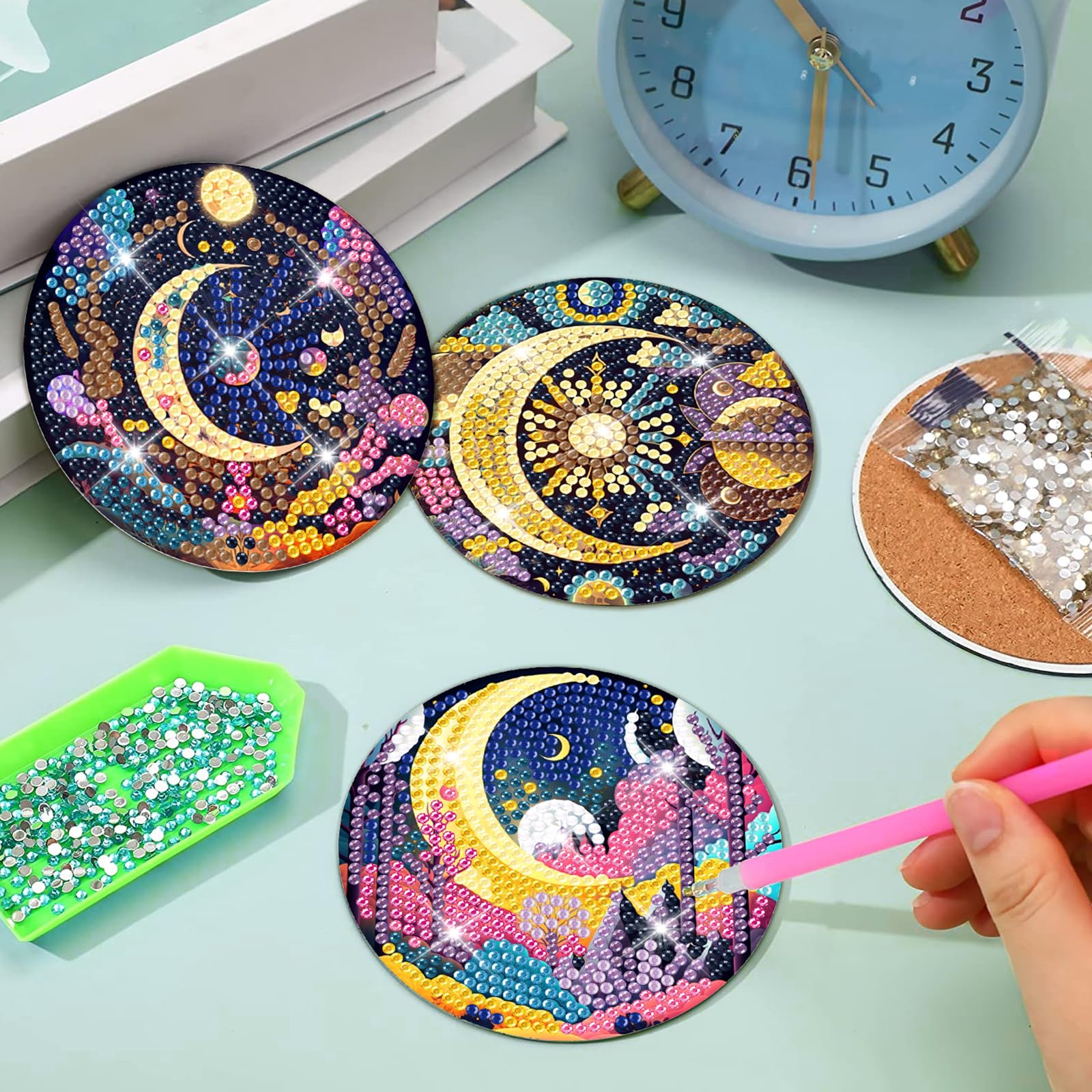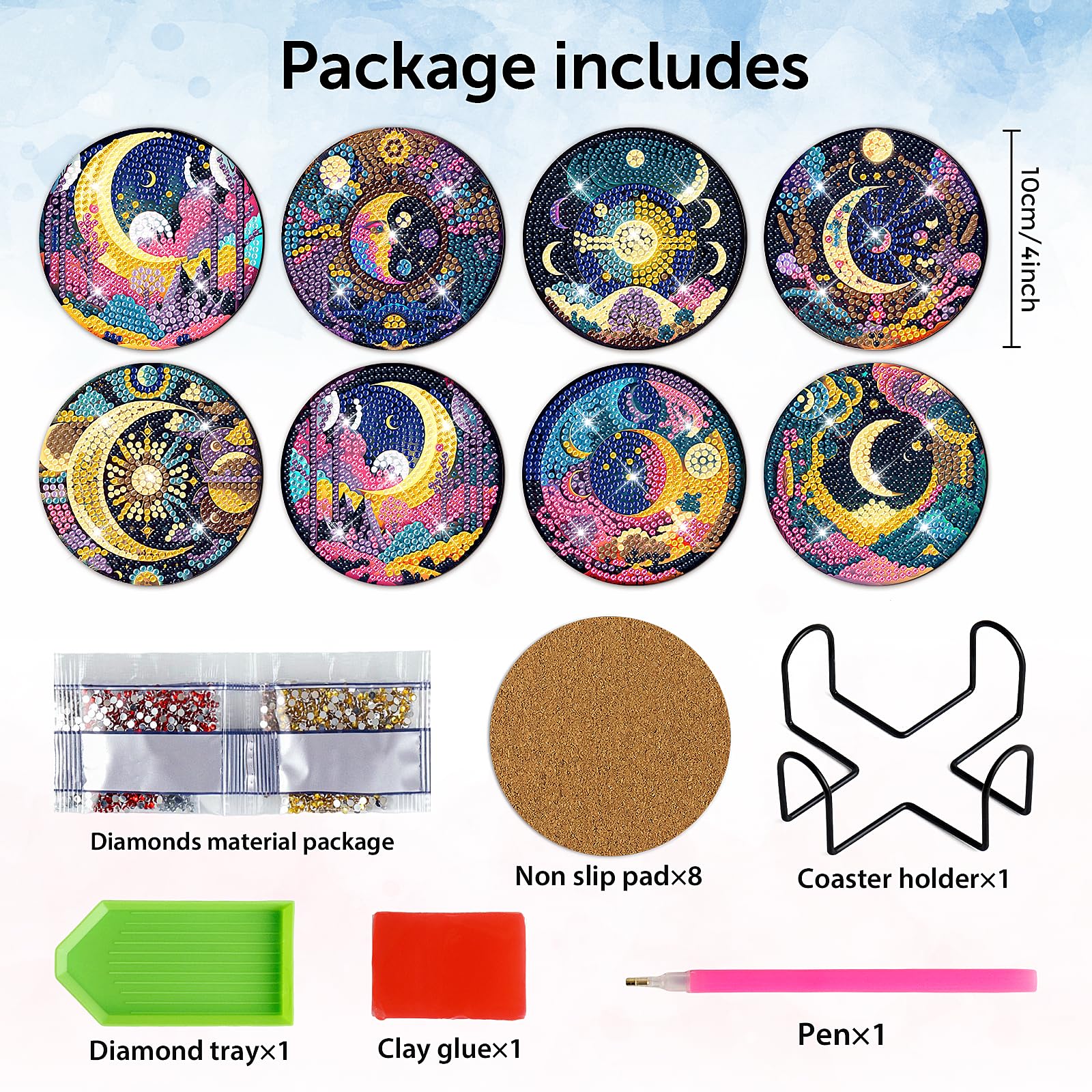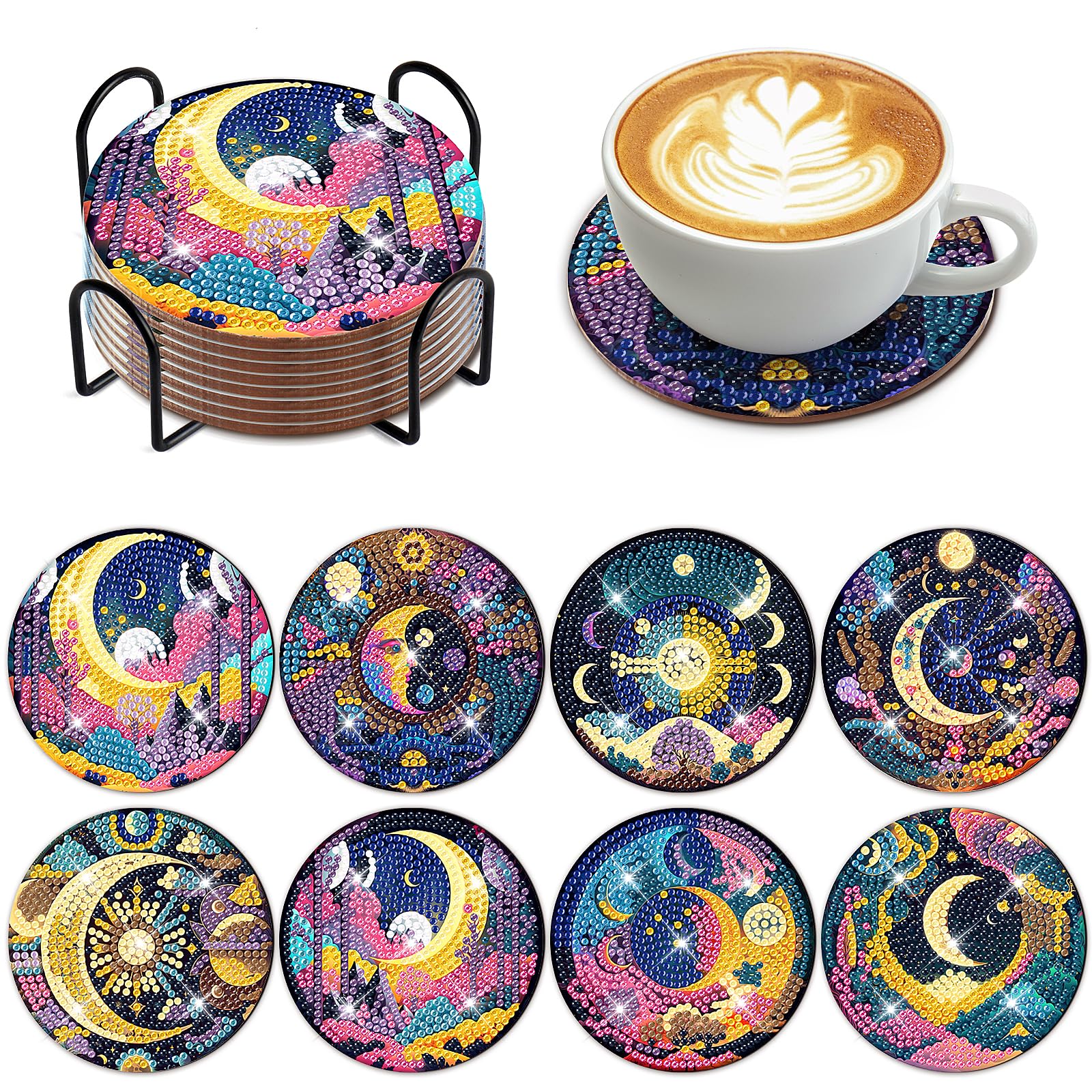 8 PCS Mystical Moon Diamond Art Coasters Diamond Art Coasters Kits with Holder Mystical Moon DIY Coasters for Beginners, Adults, Kids, Diamond Art Crafts Supplies