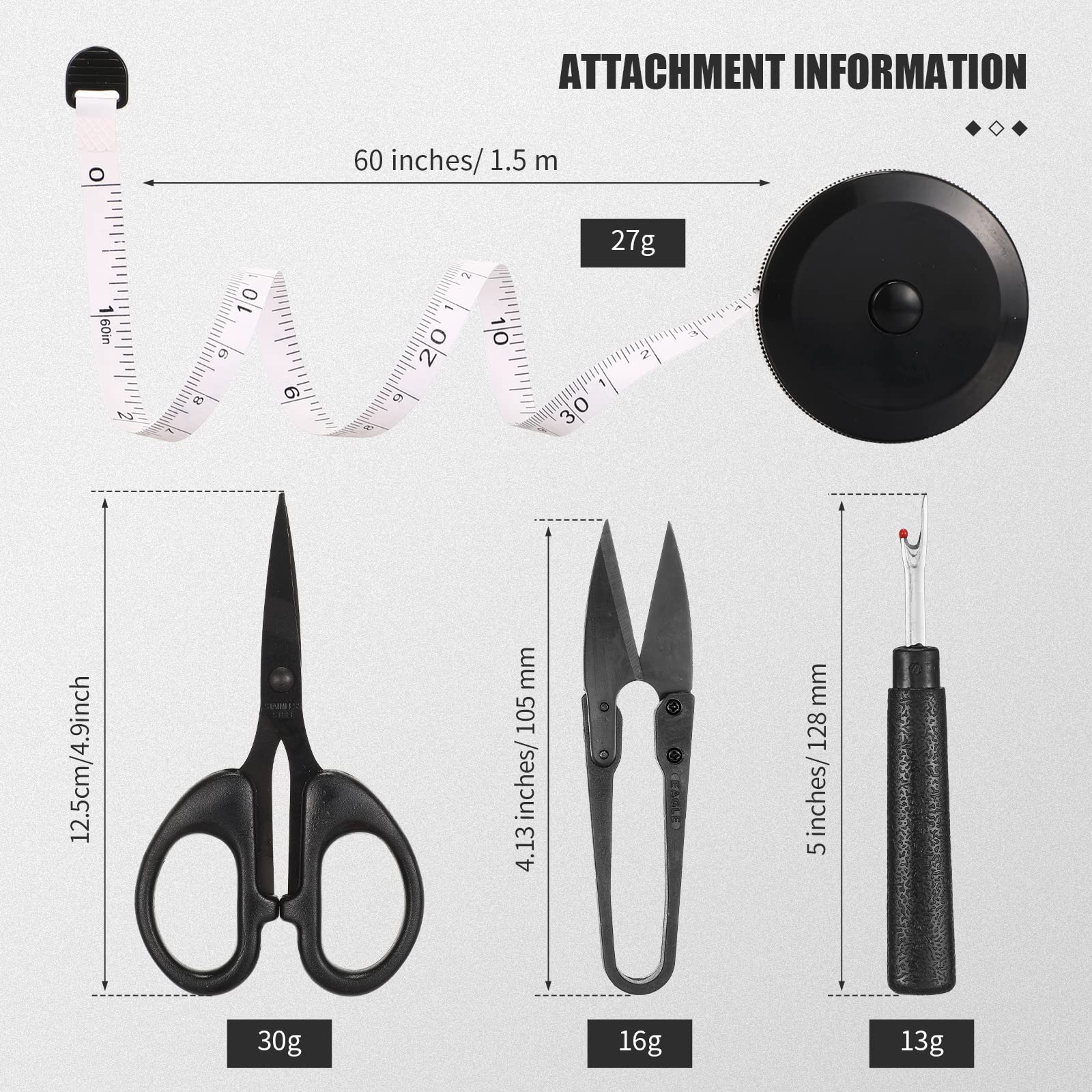 - Proper Size: the fabric scissors are about 9 inches/ 23 cm, the tape measure is about 60 inches/ 1.5 meters, the sewing snips are about 4.13 inches/ 105 mm, the seam tool is about 5 inches/ 128 mm; Please confirm the size before ordering