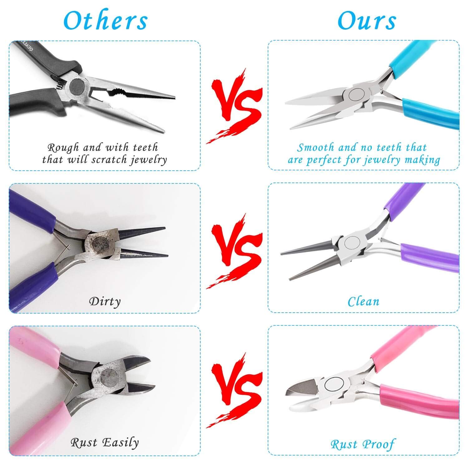- High Quality Jewelry Tools: This jewelry making tools kit are made of hard steel that are sturdy for long time use. The pliers for jewelry making with smooth polished surface that are designed for jewelry making and repair. No worry about scratch or leave marks on your jewelry