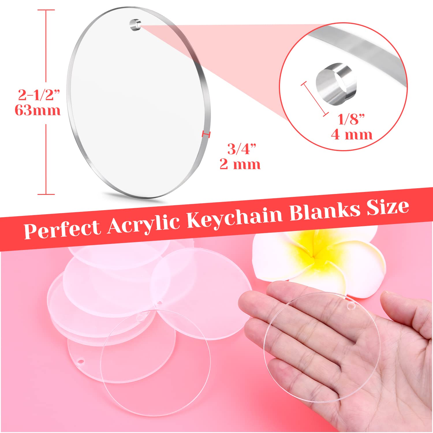 - Acrylic Keychain Blanks-30Pcs-Great Value: Package with 30 Pieces Sublimation Acrylic circle keychain blanks with hole, they are enough for your daily DIY projects and artwork needs, such as using them to engrave on & make epoxy items, painting some ornaments for the holiday, making keychains for family and friends gifts.