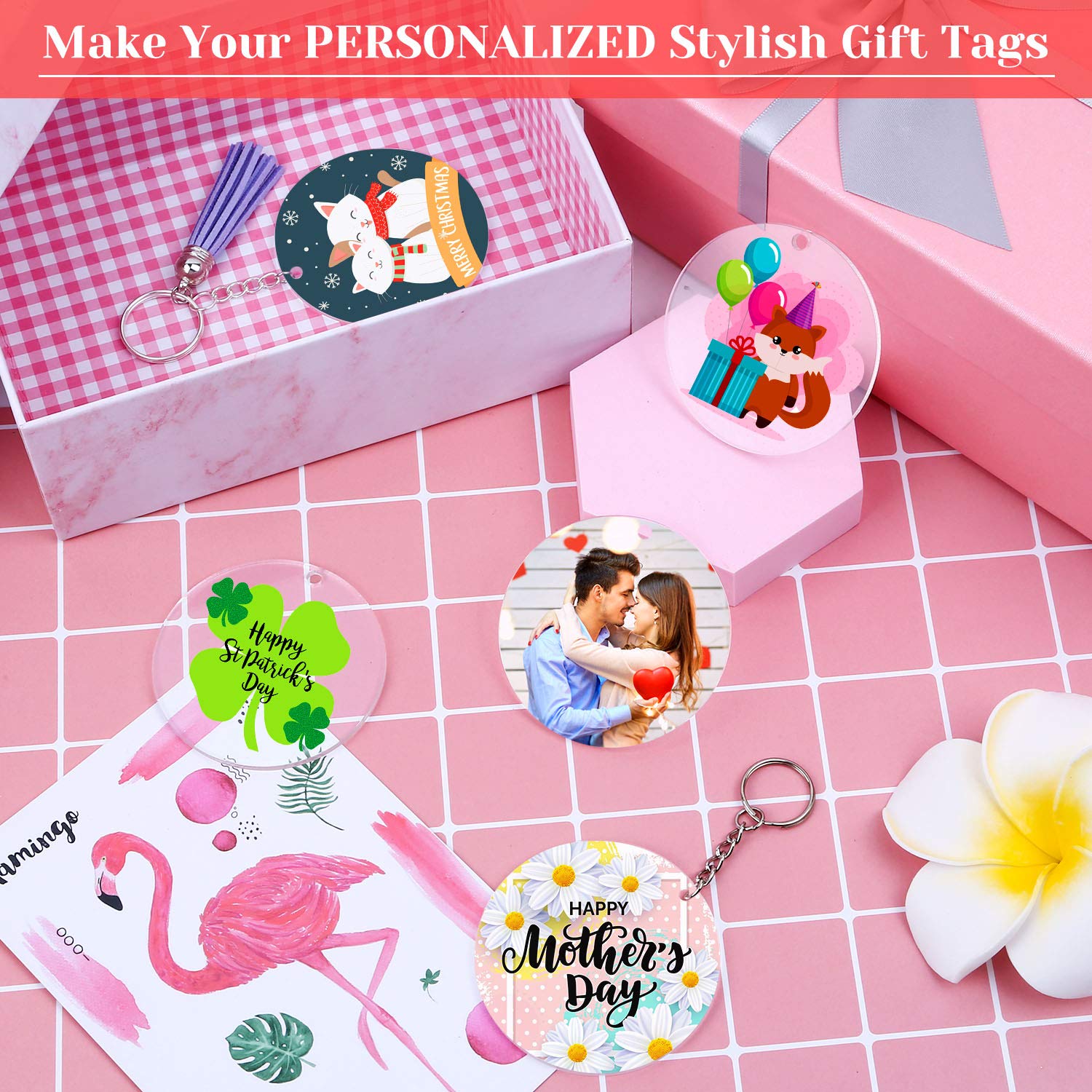 - Perfect for Personalized Ornaments: You can draw, carve, collaged on, die cut machines to make designs or paste your own favorite sticker on the 2.5" acrylic keychain blanks to decorate them, the acrylic blanks keychain bulk are suitable for making key chains, zipper pulls, backpack bag tags, ornaments, gift tags, pendant decoration, souvenir and many other craft projects, Customize with vinyl/calligraphy/oil-based paint pen and you will have a great gift.