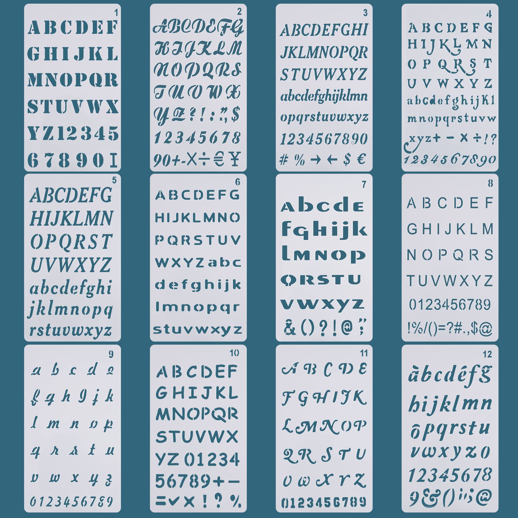 Letter Stencils - 12 Pack, 4 x 7 Inch, Reusable Plastic Alphabet Stencils for Bullet Journaling, Scrapbook Decor & DIY Craft Projects