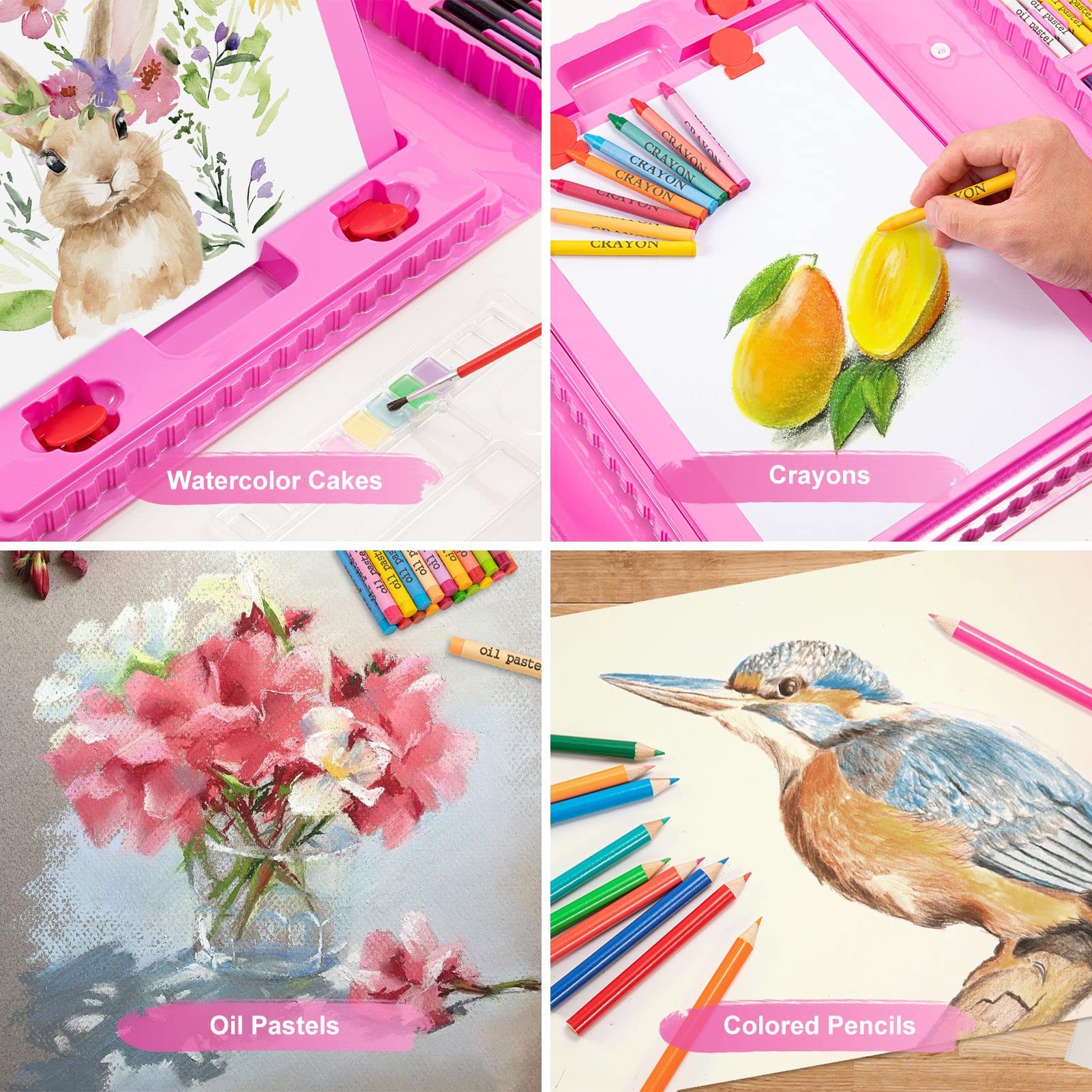 Art Supplies, 272 Pack Art Set Drawing Kit for Girls Boys Teens Artist, Deluxe Gift Art Box with Trifold Easel, Origami Paper, Coloring Book, Drawing Pad, Pastels, Crayons, Pencils, Watercolors(Pink)