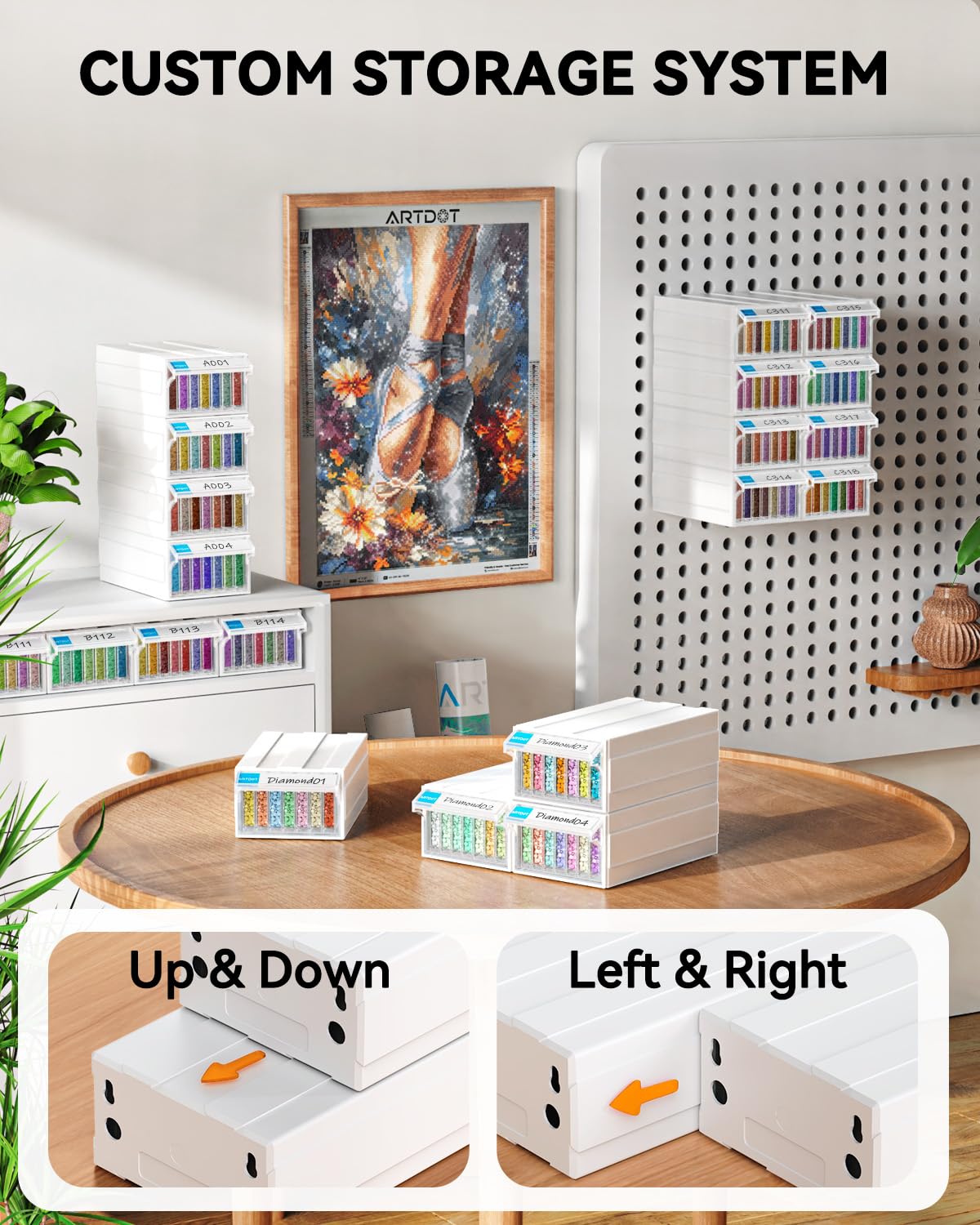 - PARALLEL SPLICING & STACKABLE STORAGE: The ARTDOT diamond painting storage containers is designed stackable & wall-mountable which means it can be stacked as desktop drawer wall organizer or craft cabinet