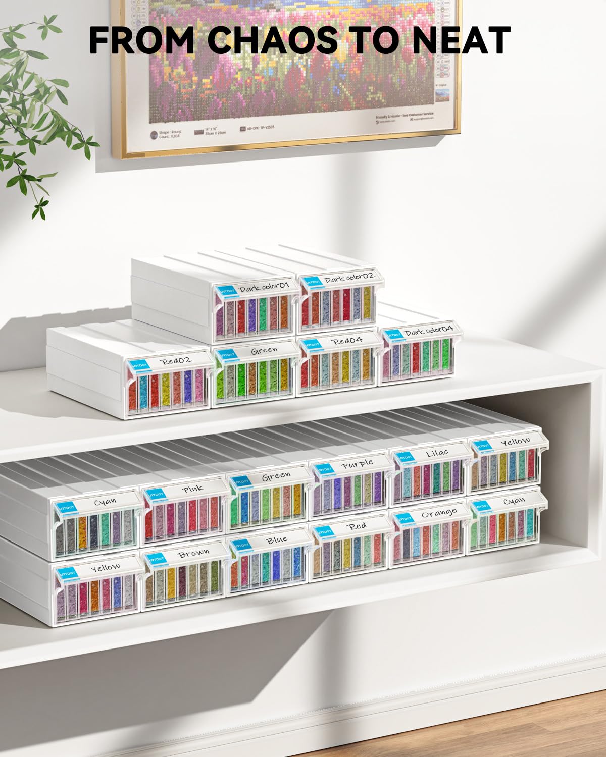 - DRAWER STYLE DESIGN - The beads can storage 140 different colors in each drawer storage set. Glide effortlessly through transparent drawers for diamond retrieval and organization, saving time for craft, while also shielding containers from dust and damage