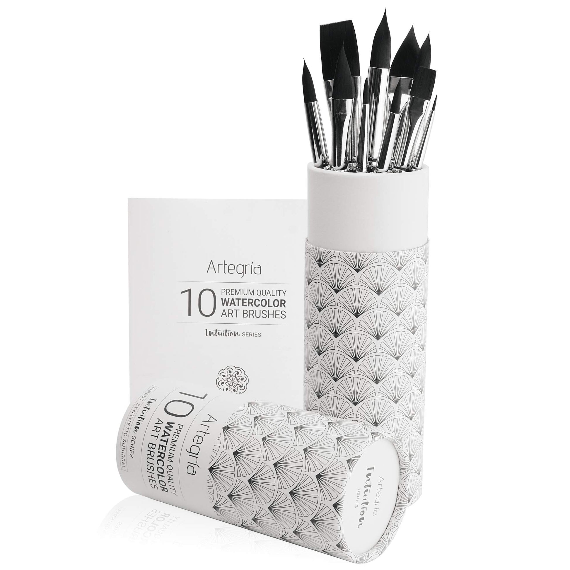 10 Soft Synthetic Squirrel Paint Brushes, Including Pointed Rounds, Flats, Dagger, Oval Wash