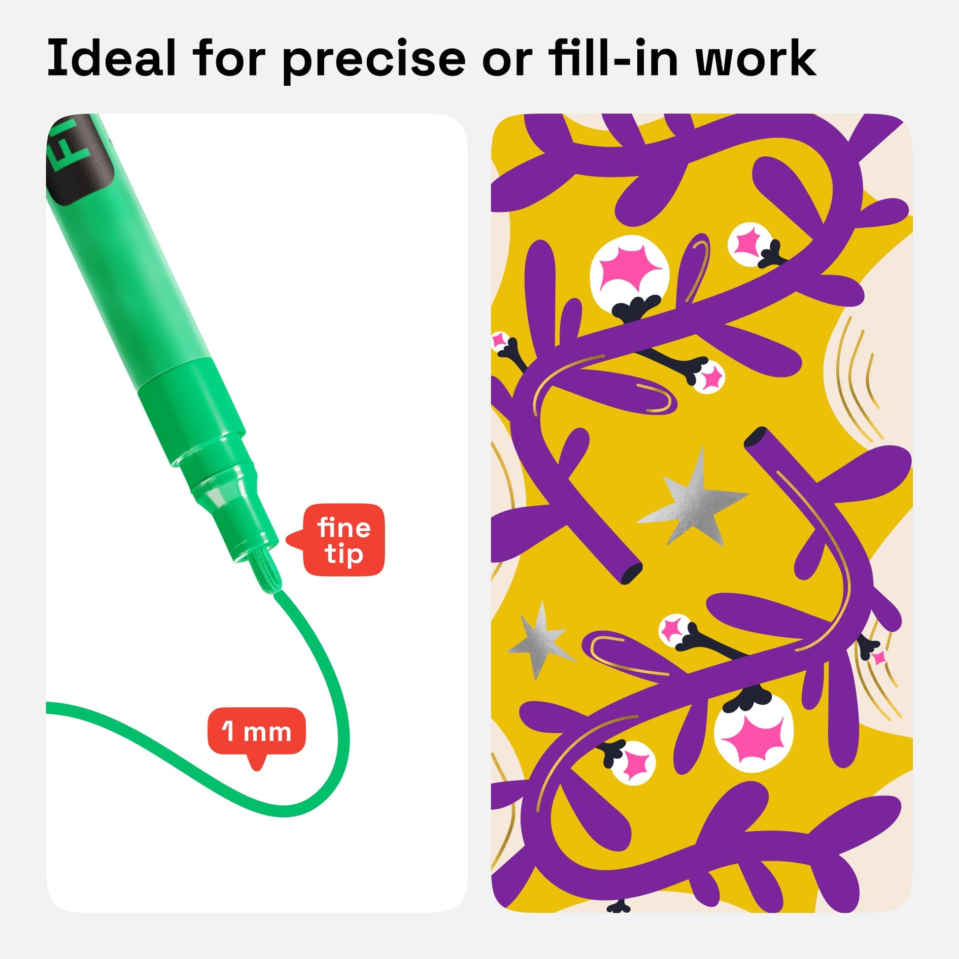 - Professional Quality: Artistro oil based paint markers flow without flooding or jamming with a fine round tip 1-2mm. These paint pens have a Japanese nib and Italian oil based paint in: black, white, gold, silver, brown, blue, yellow, orange, red, green, pink, purple, bright blue, hot pink, and glowing green.