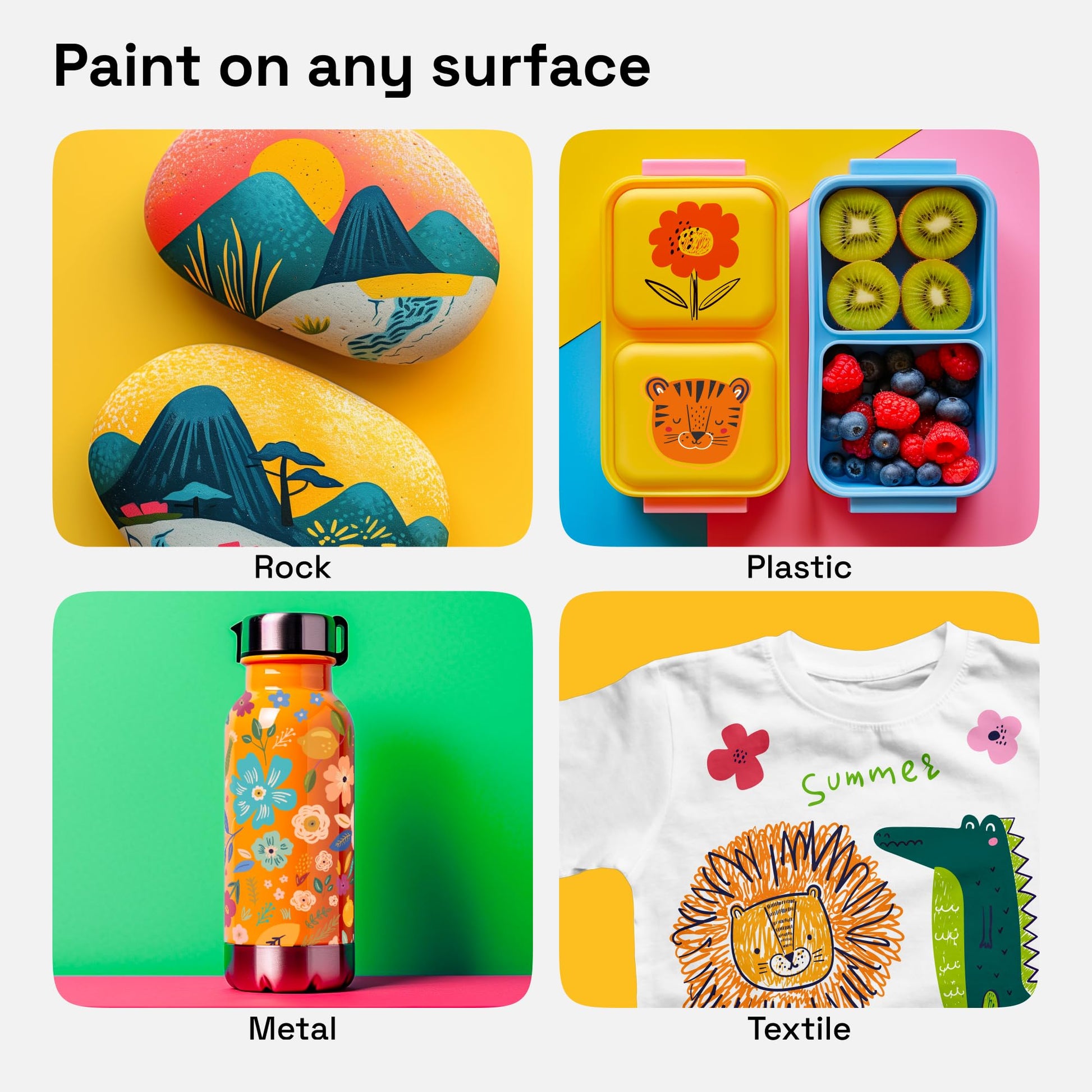 - PRE-ACTIVATED: Unlike usual push down markers, our paint marker set has cotton nibs that are pre-activated, making them perfect for kids!