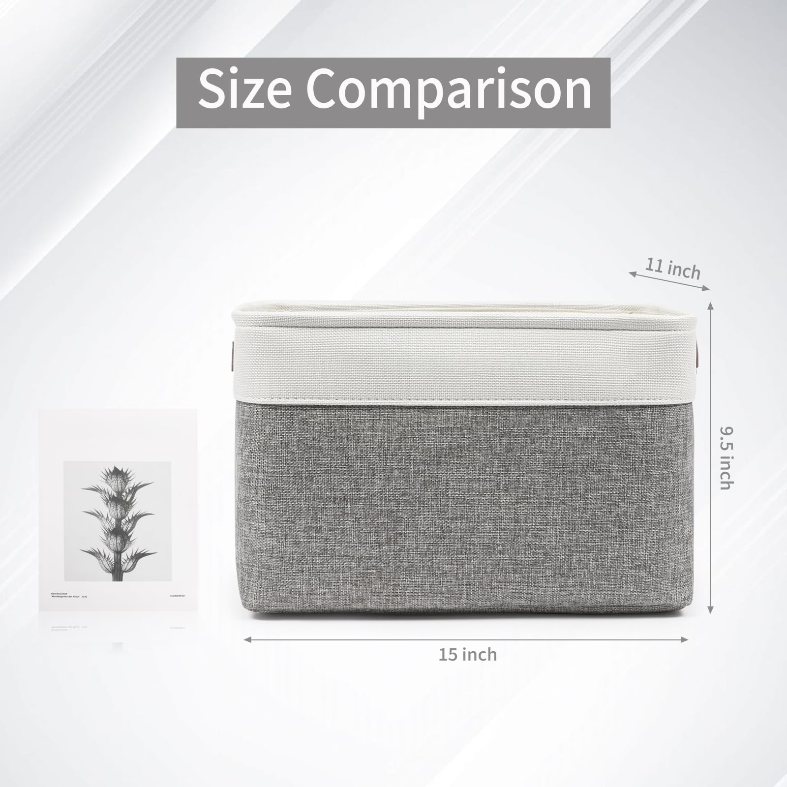 - 【Large Storage Bin】- Set of 3 decorative storage baskets, dimensions (each): 15” (L) x 11” (W) x 9.5” (H) / (38cm x 28 cm x 24 cm). Its huge capacity keeping your home nice and tidy. Minimalist design and neutral color can be integrated into any home decorations and styles. Sturdy fabric baskets add a stylish touch to a living room, bedroom, office, kitchen or personal space.