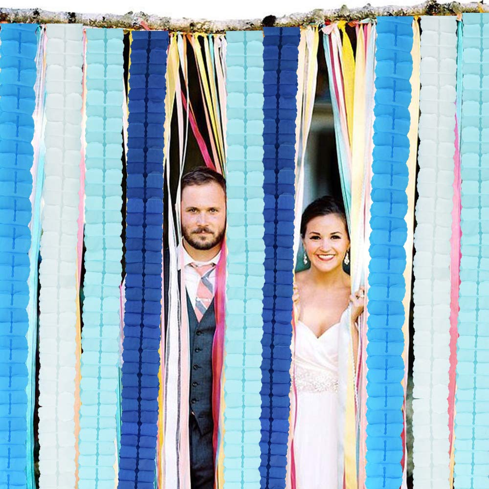 12PCS Four Leaf Clover Paper Garland 120ft Navy Blue Ocean Party Streamers Tissue Flower Reusable Hanging Banner for Wedding Baby Shower Home Party Backdrop Graduation Decoration