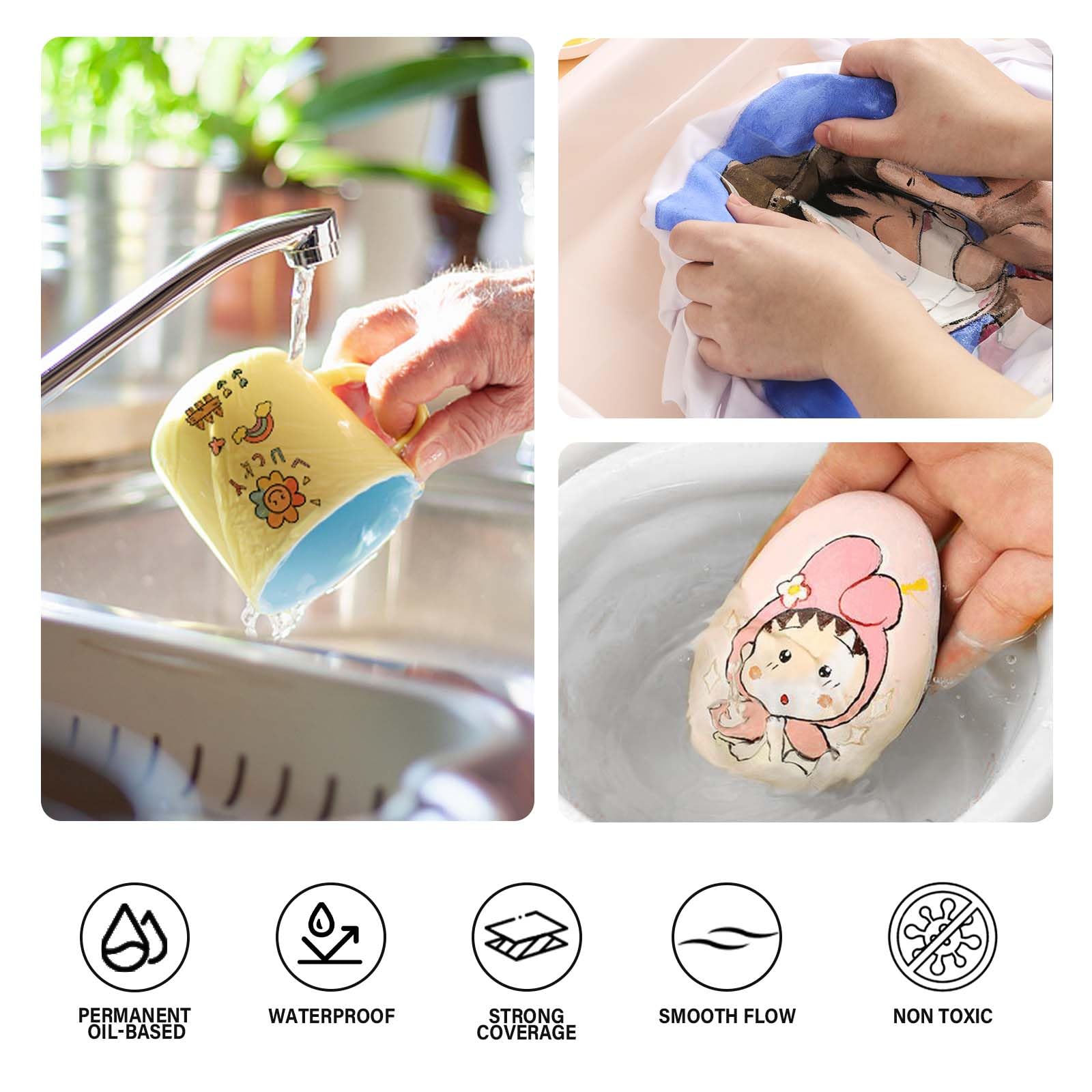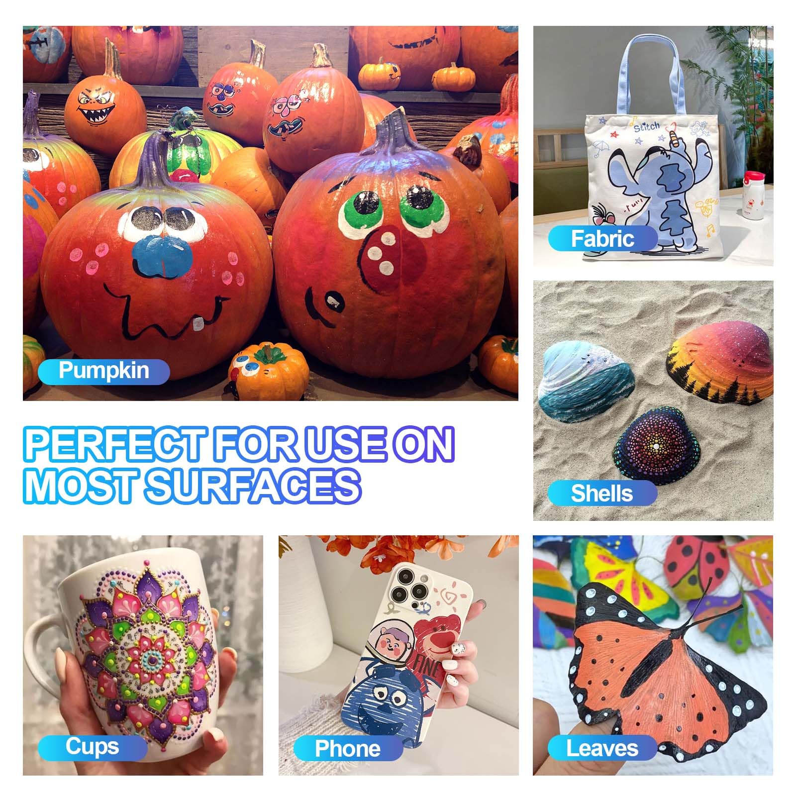 - 【Dual Tip Acrylic Paint Pens】Each acrylic marker come with a 1-5mm round nib and a 1mm fine nib. Dual tip design meets different coloring needs. The fine tip is suitable for outlining, fine line work; The brush tip works well for large areas of coloring, detailing.