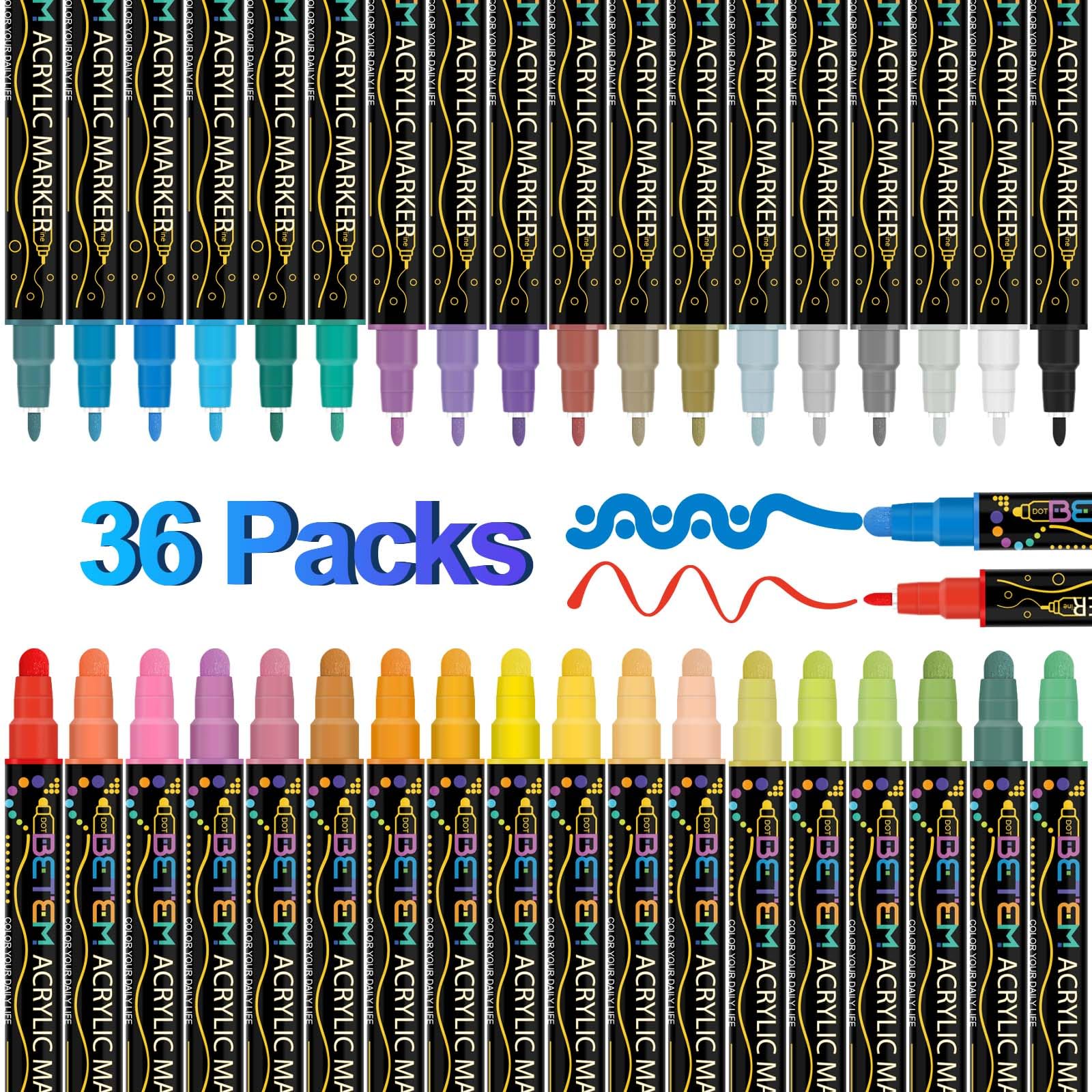 36 Colors Dual Tip Acrylic Paint Pens Markers, Premium Acrylic Paint Pens for Wood, Canvas, Stone, Rock Painting, Glass, Ceramic Surfaces, DIY Crafts Making Art Supplies