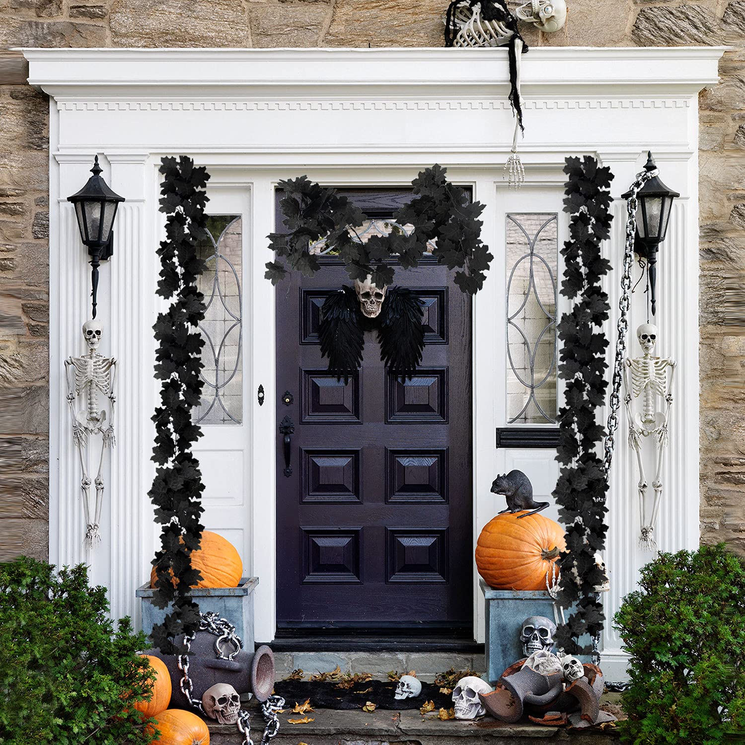 - UNIQUE DESIGN: Black is the classic Halloween theme color, and maple leaves are classic decorations. The black maple leaves garland is a unique and new design, which perfectly fits the mystery and horror atmosphere of Halloween