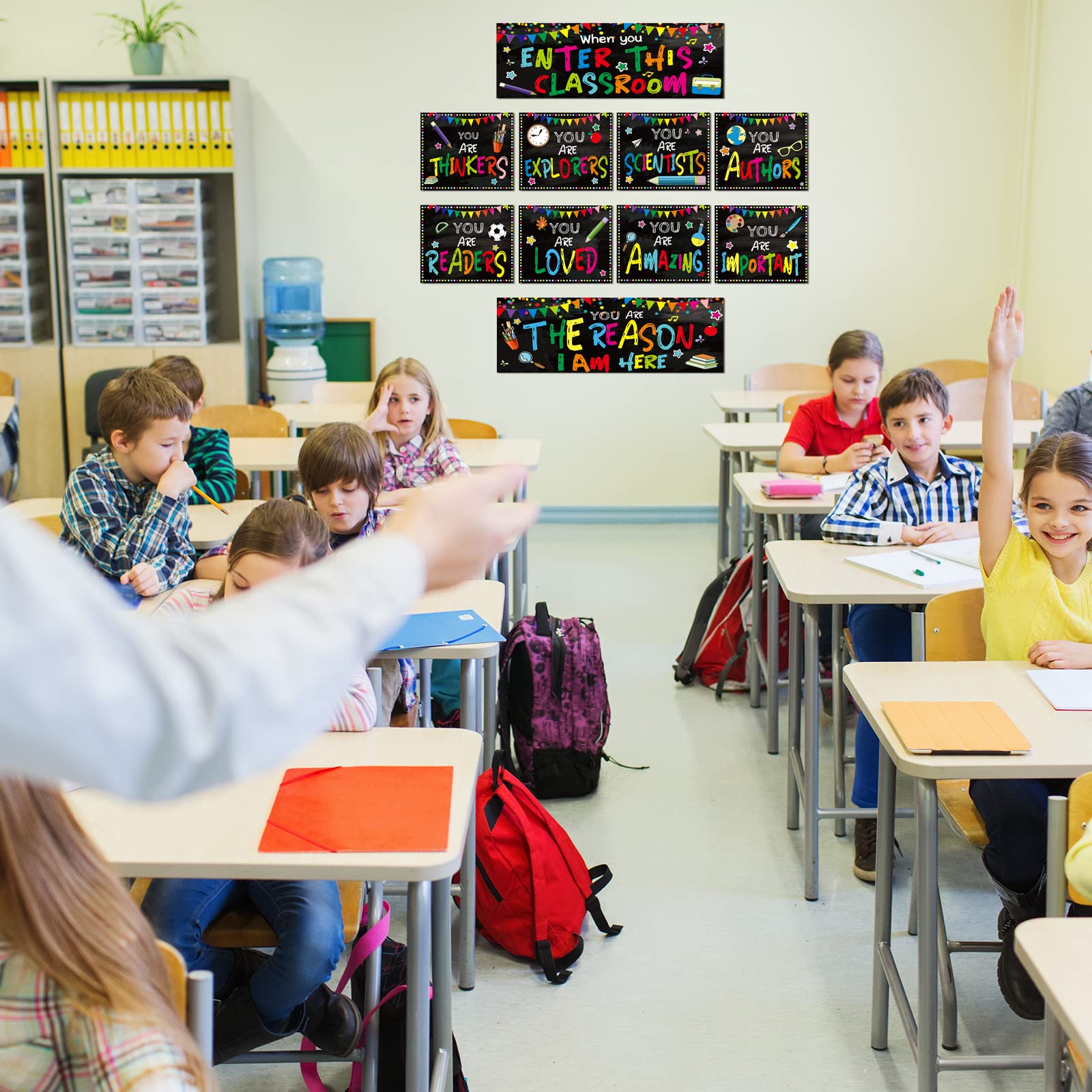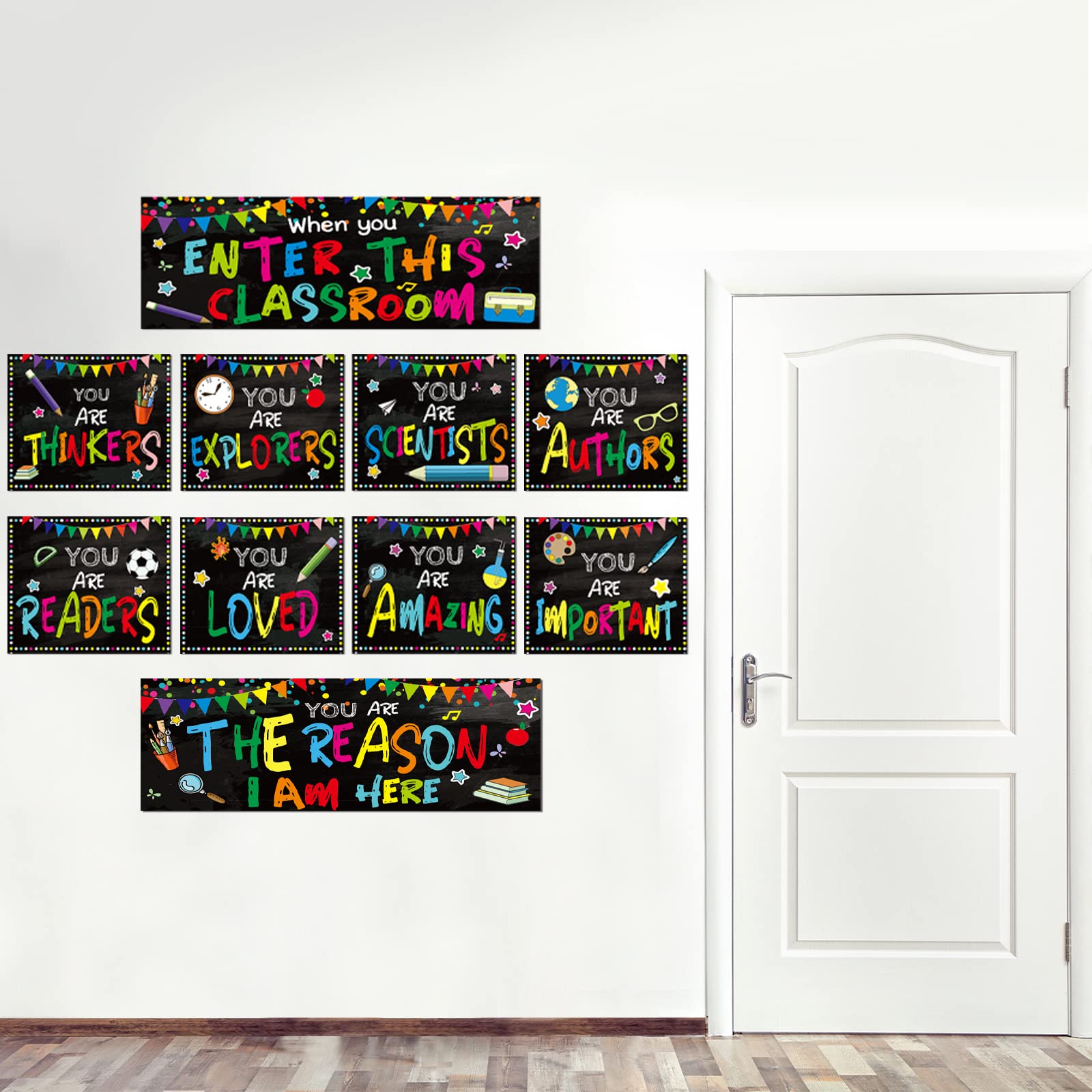 - 【Package Includes】10 pieces When You enter Classroom decoration sign, 10 x 11.8 inches size + 60 pieces glue point; Great combination for classroom decoration, bulletin board decor, classroom front door sign or campus decorations.Full design size is 43"x40".