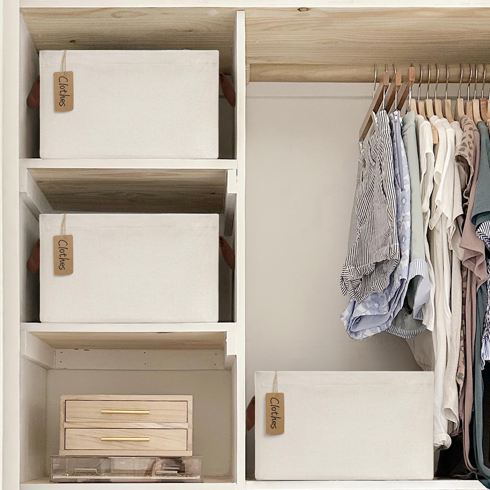 Storage Bins for Shelves, Closet Bins for Organization, Collapsible Storage Baskets for Towels, Rectangle Basket for Bedroom, 14 ¾" L x 10 ¼" W x 8 ¼" H, Beige, 2-Pack