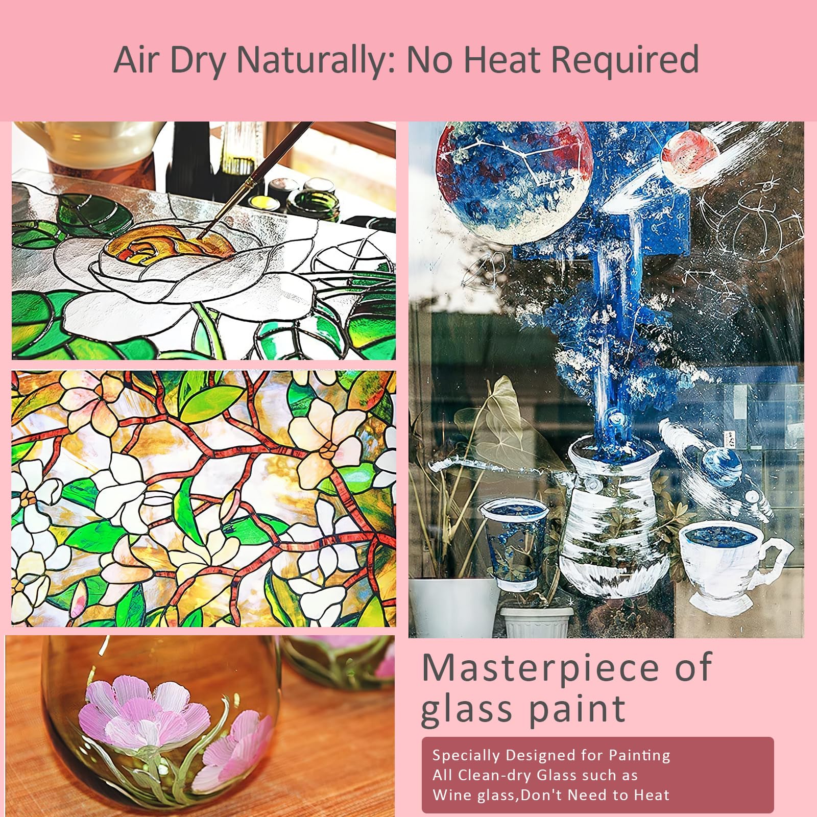 - Convenience: Tailored for painting on various glass surfaces including wine glasses, windows, bottles, jar, glassware, enamel, porcelain and ceramics. Allow 48 hours for natural drying to unveil your creations – no heating or baking required. However, you can expedite drying by placing your artwork in the oven at 176℉ for 1 hour; this paint is oven-safe too.