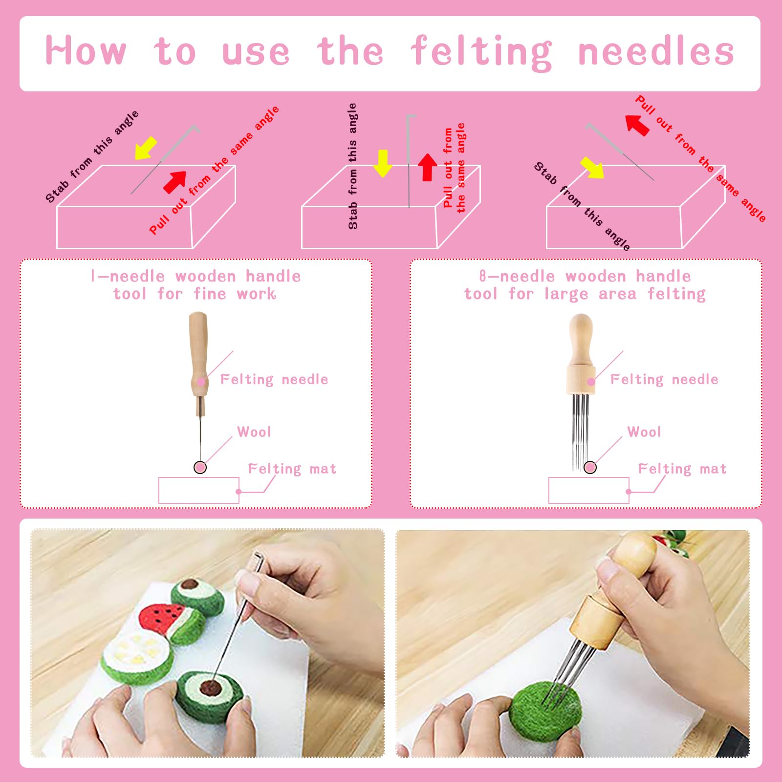 - Superior Material Ensure Long Time Use: Our needle felting tools kit are made of superior metal and wood ,durable and ensure long time use.The wooden wool felting tool is free to replace all sizes of needles,very easy to use! The thick needle is suitable for the primary fast stab felting stage, the middle needle is suitable for the fixed shape stage, and the fine needle is suitable for the fine processing stage.