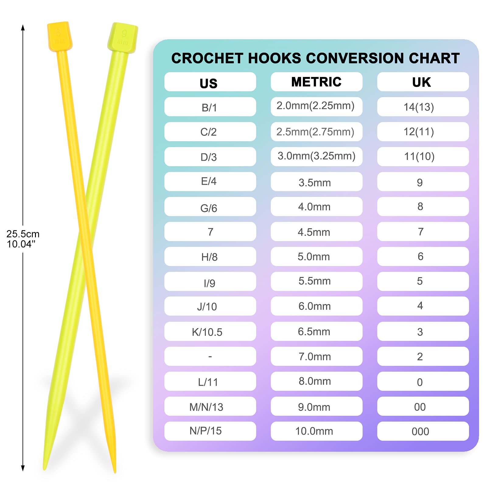 - [Perfect Needle Size for Knitter and Crocheter] 7 Pairs Single knitting needles include: 4.0mm, 5.0mm, 6.0mm, 7.0mm, 8.0mm, 9.0mm, 10mm. Each 10 inch long knitting sticks set is individually wrapped in plastic packaging ready for use. This is a great set for beginners but also seasoned knitters too