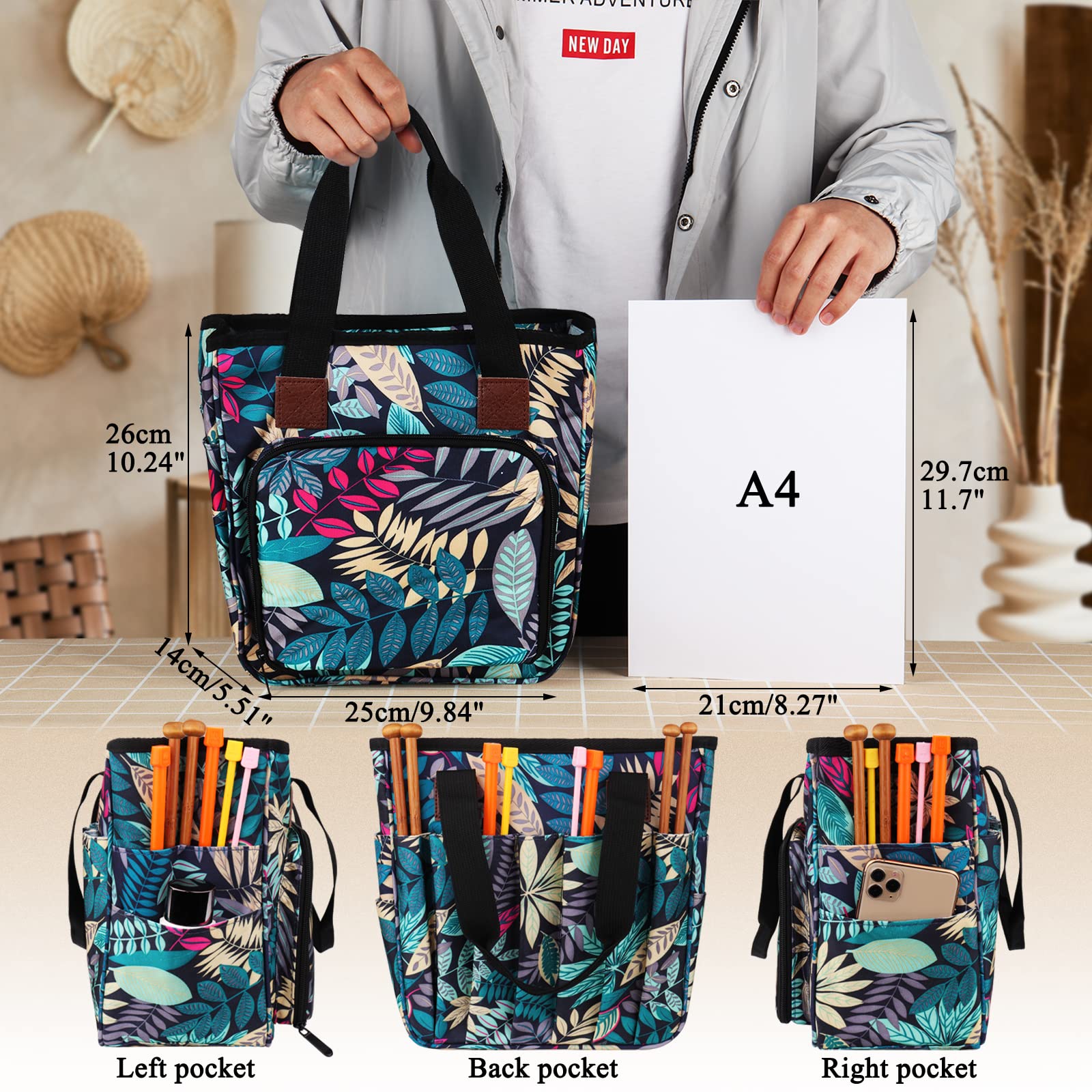- Tested by Practice: The knitting organizer bag made of premium, durable and sturdy 600D oxford fabric, so holds loads, water-resistant, easy to clean. And the well-padded lining keeps its shape in good condition and without slumping. With durable zippers and pockets and comfortable top handles, sustainable and long-term use