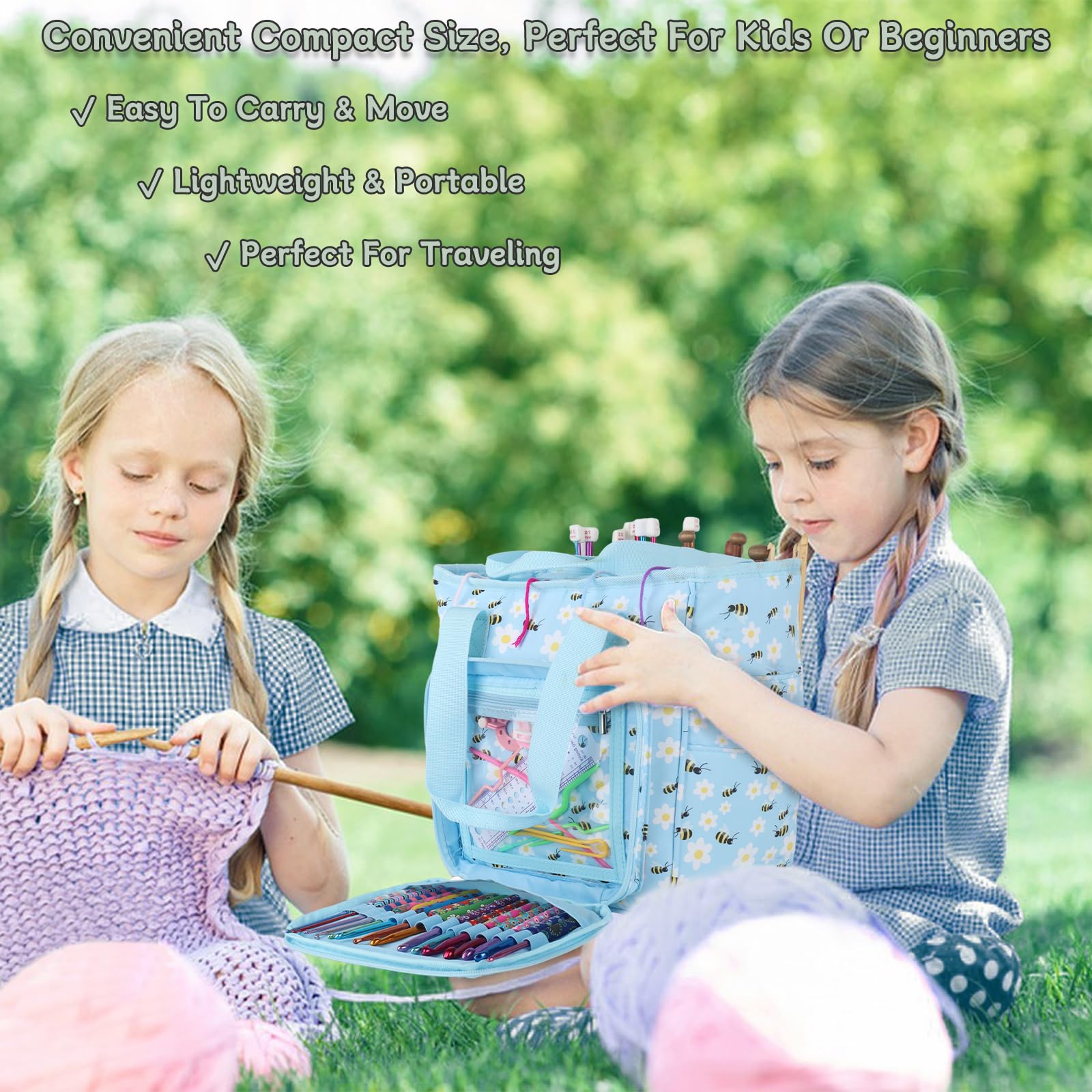 Portable Crochet Bag Organizer, Yarn Storage Organizers and Storage Organized for Crochet Hooks, Knitting Needles, Skeins of Yarn, Knitting & Crochet Supplies, Bees & Flowers (No Accessories)