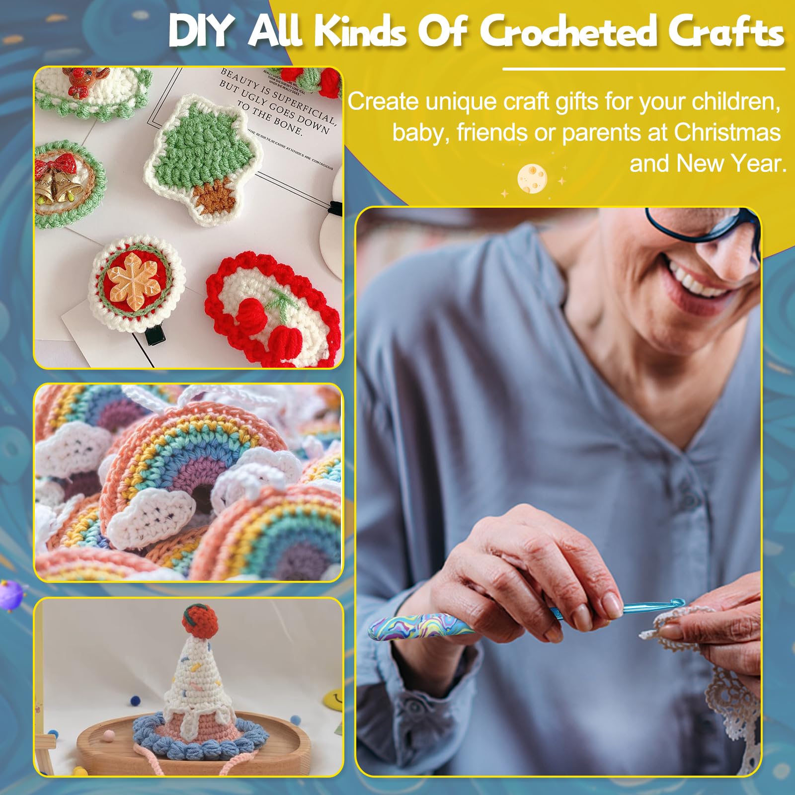- Crochet Hook Set with Pretty Clay Handle: The crochet hook set uses very durable clay materials to make different colors of pretty starry night handles, well crafted and sturdy. When you use the crochet hooks for crocheting yarn to knit, you will like the comfortable feeling to hold in your hands. The light-weight warm handle makes it easy for old fingers and arthritic hands to hold and weave for a long time without any pain and discomfort in hands and wrists.
