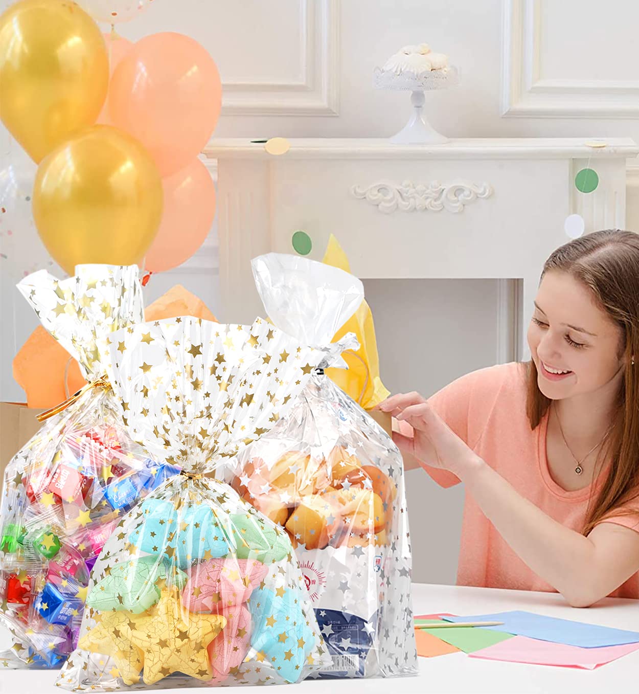 - WIDE APPLICATION: Star cello plastic treat gift bags great for small businesses, weddings, parties, birthdays, holiday events, or any other special occasion to pack your gifts, candies, cookies chocolates, biscuits, snacks, cakes, soap, toys, crafts, and other accessories