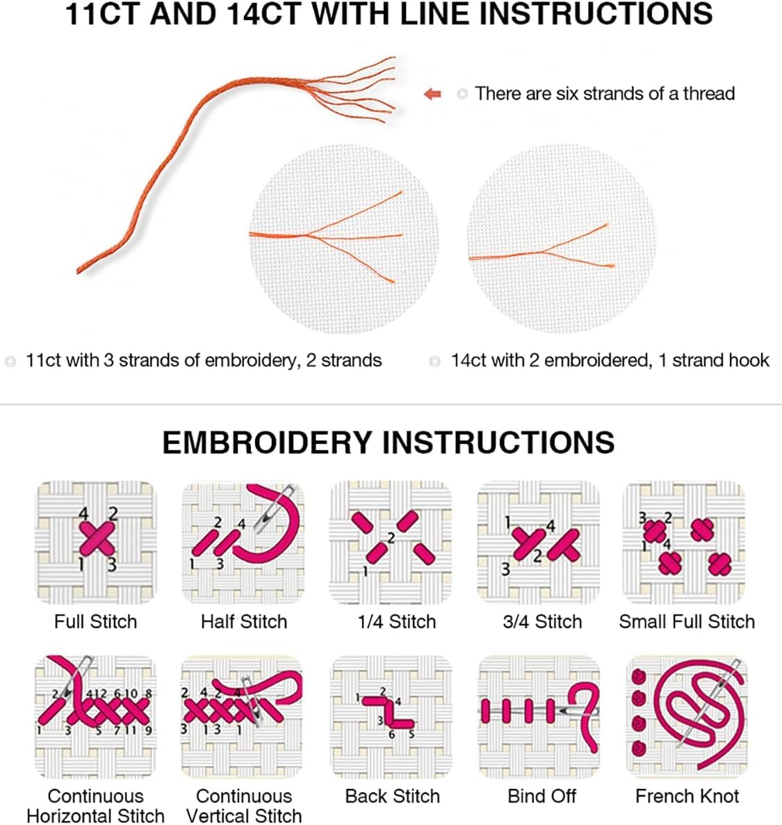 - 【Crafted with High-quality Materials】 Our beginner stamped cross stitch kits include everything you need to get started. Each kit comes with clearly marked grid lines on 11ct fabric, making it ideal for those new to the art of embroidery, ensuring a seamless experience as you follow the counted cross stitch patterns.