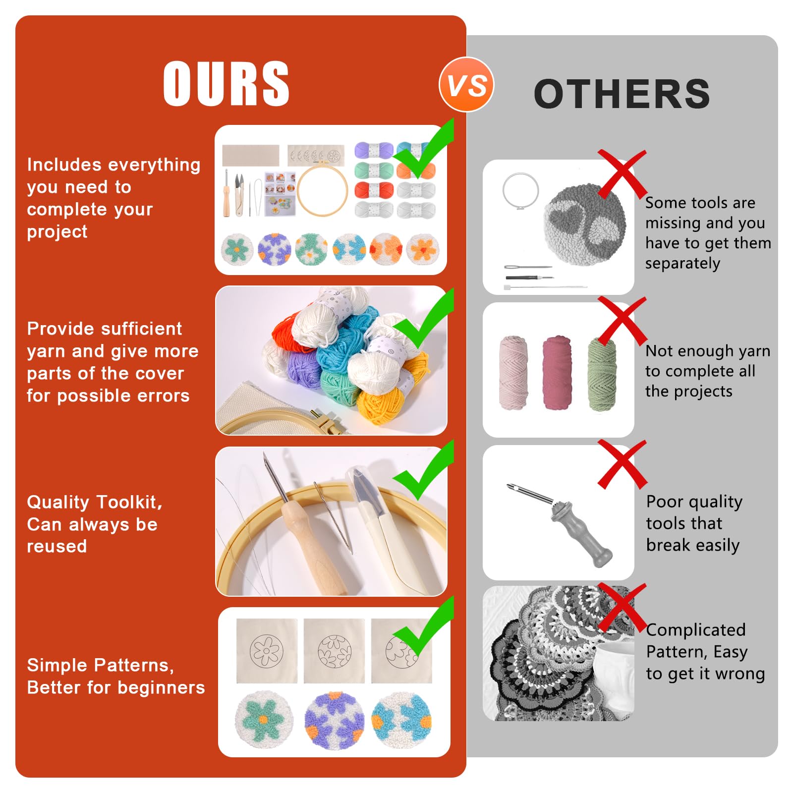 - 【High Quality Tools and Enough Materials】: CraftyManor has tightly controlled the quality of this needle punch kit. The Punch Needle is great quality and does not break easily, the small scissors are sharp, and these gadgets can be reused later.