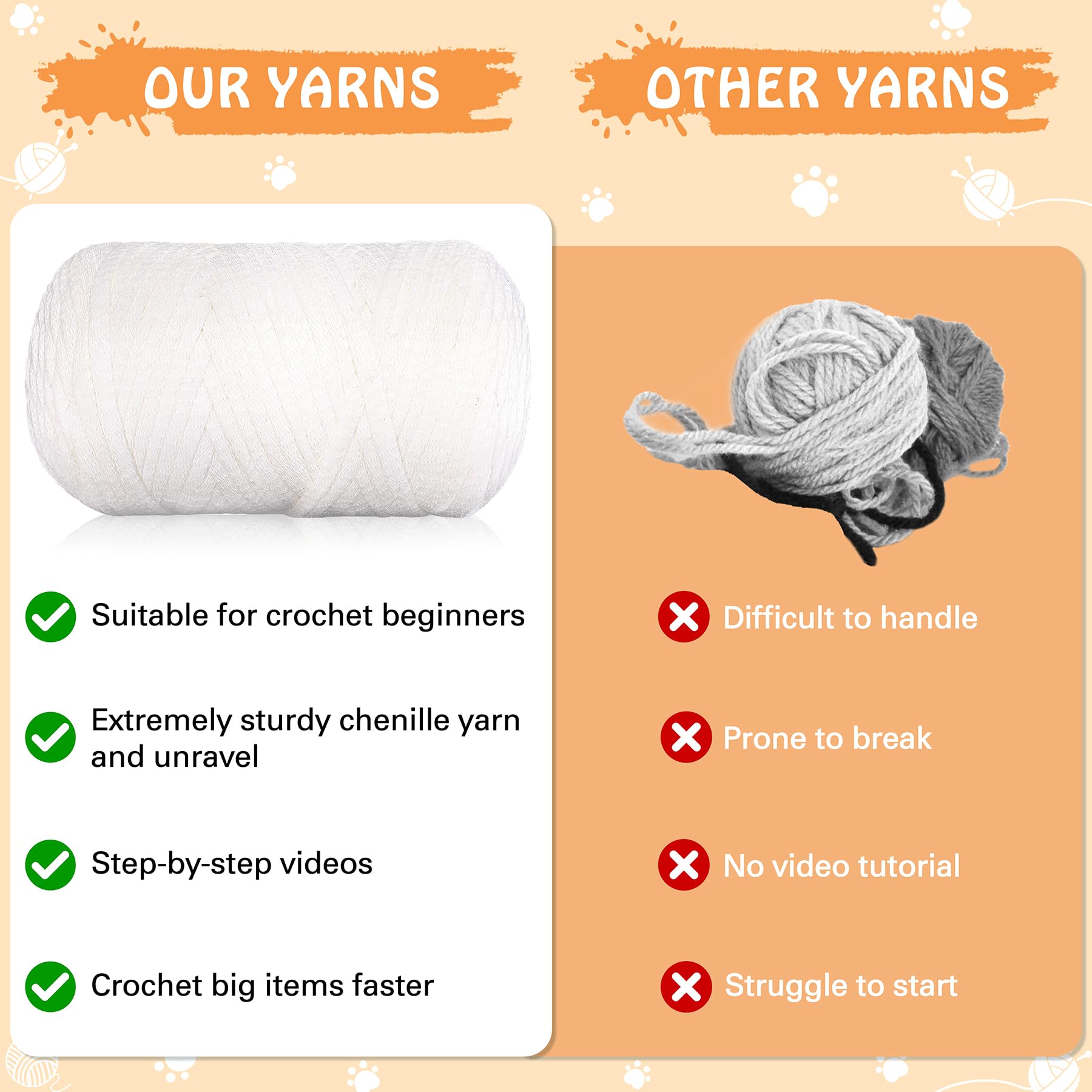 - 🧶【Step-By-Step Video Tutorials】Is this your first time learning crochet? No worry! Our crochet kit for beginners comes with a color-printed instructions and step-by-step video for beginners. Each crochet step has detailed explanations for you to follow with, even those who have never crocheted before can dive into their first project. We also provide the extra yarn in every color, so beginners can experiment and correct any mistakes without worrying about running out of yarn.