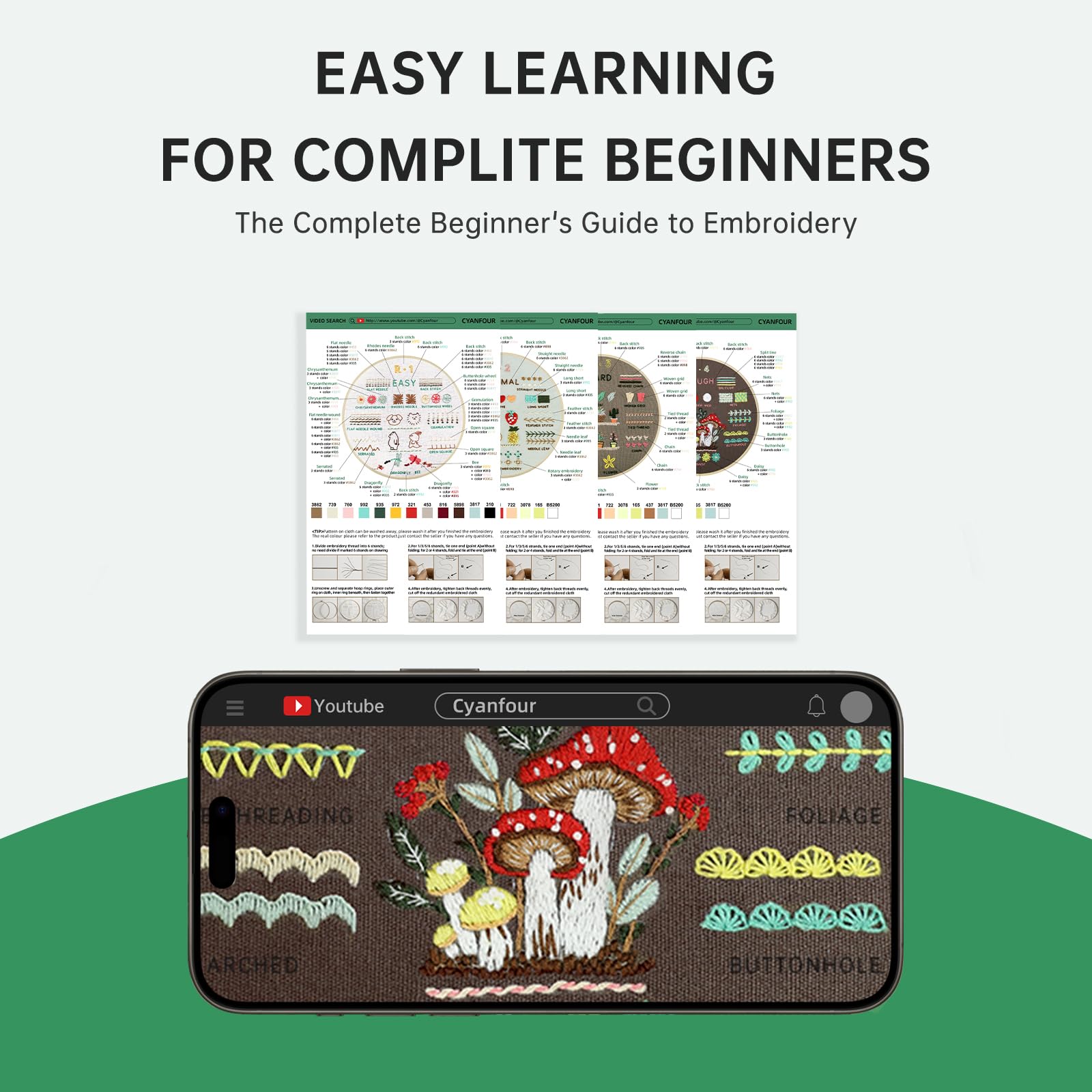- [ DETAILED INSTRUCTION & VIDEO ] We've got you covered with detailed instructions and video tutorials for every stitching technique and pattern on our embroidered fabric. Just smooth sailing as you dive into the world of embroidery for a better learning experience!