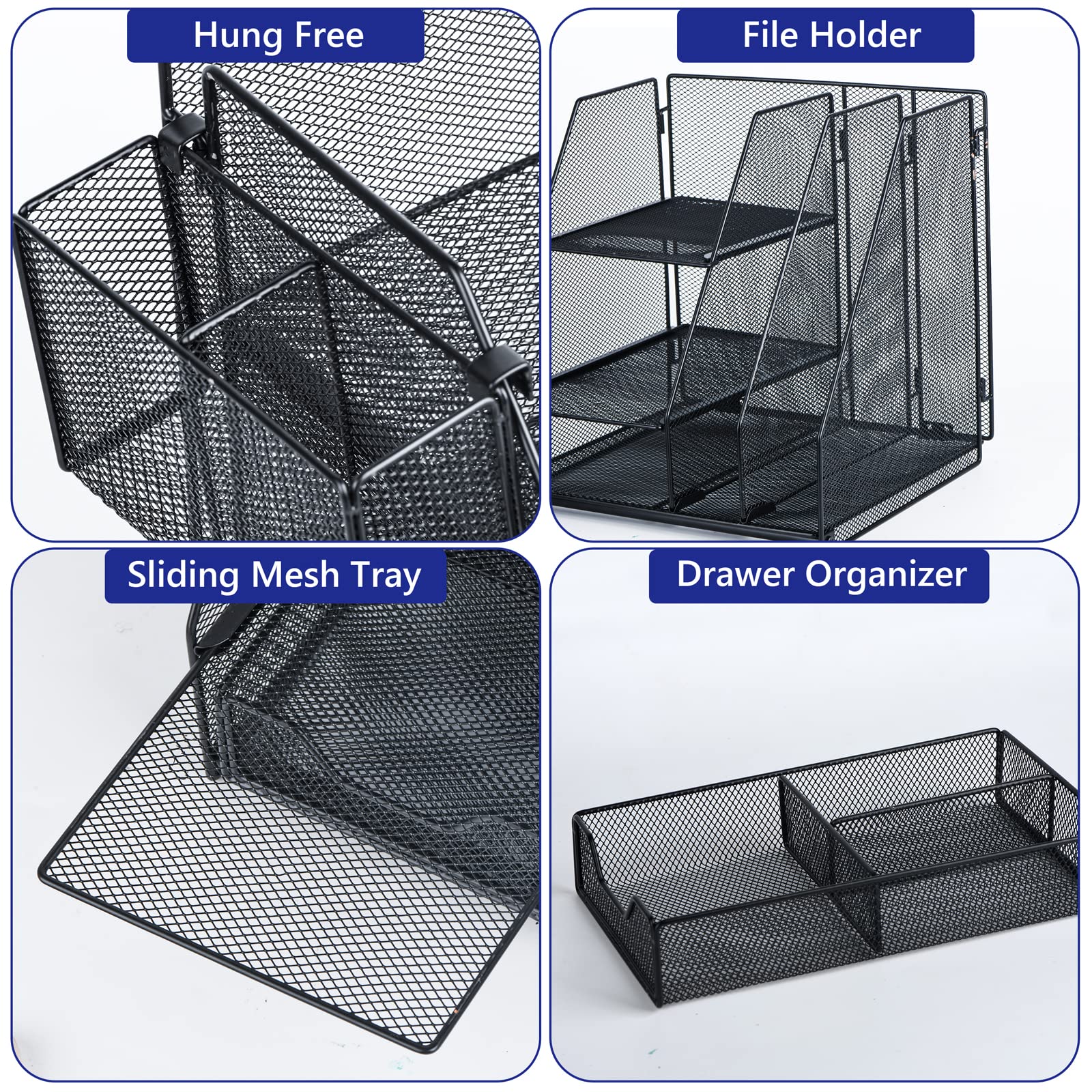- 【Space Saving】: The paper tray organizer is very suitable for storing books, magazines, letters, and paper; The drawer organizer and hanging pen holder accommodate all office supply accessories; Helps you stay away from cluttered desks and stay organized.
