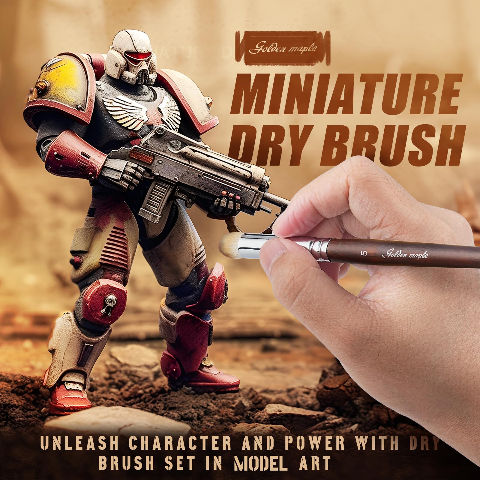 Detail Paint Brushes Dry Brushes, Golden Maple 10PC Flat Miniature Dry Paint Brushes Fine Detail Paint Brush Set for Acrylic, Oil, Watercolor & Figurine