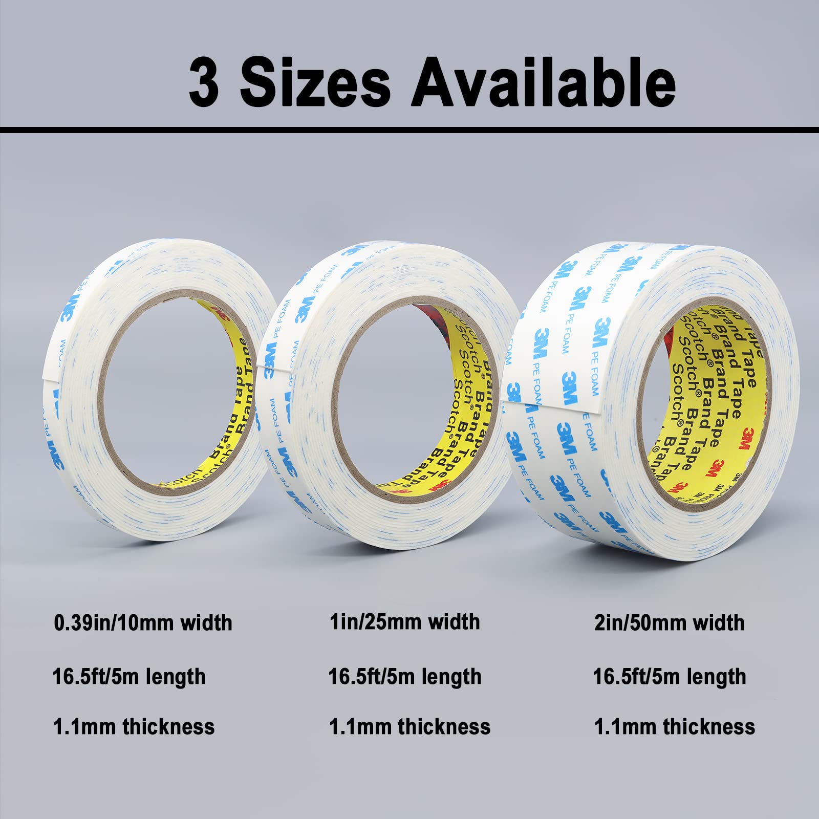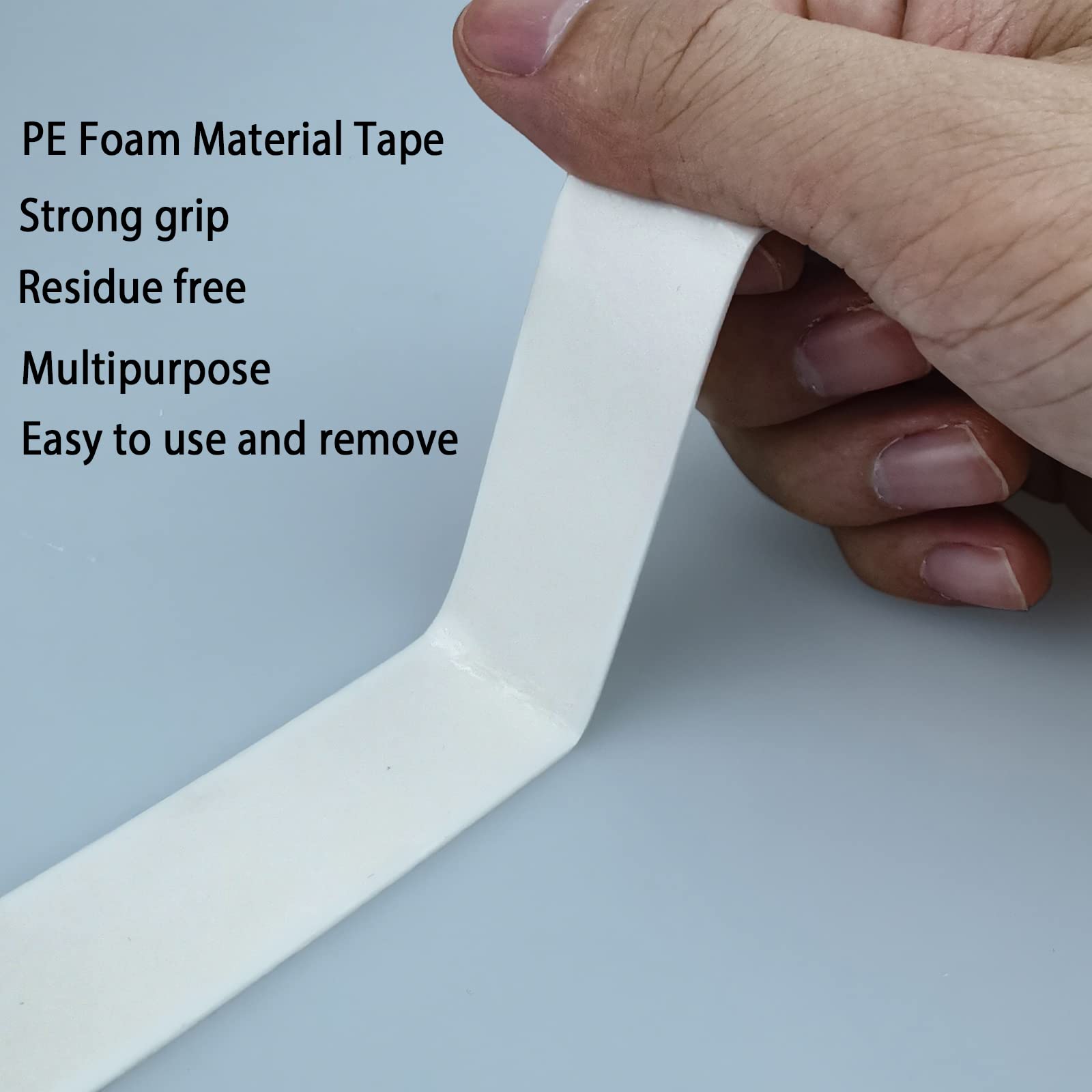 - 【Double Sided Tape Data】: Extra large tape 1in/25mm width and 16.5ft/5m length and 1.1mm/0.043in thickness and white color mounting tape. PE foam tape material with very strong adhesive and removable with damage free heavy duty tape.