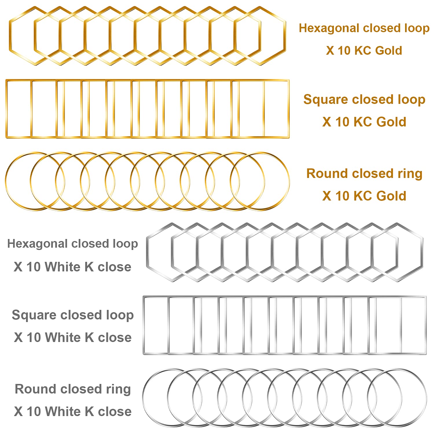 - 【Package includes】: you will receive 60 pieces hoops earrings .include 20pcs hexagon hollow frames, size 25 mm/ 0.75 inch.20pcs round earring making charms hoop, size : 30mm/0.9inch.20pcs square shape earrings Pendant ,size25mm/0.75 inch.2 color (K Gold &white K ) optional , the quantity of our products is sufficient for your daily use