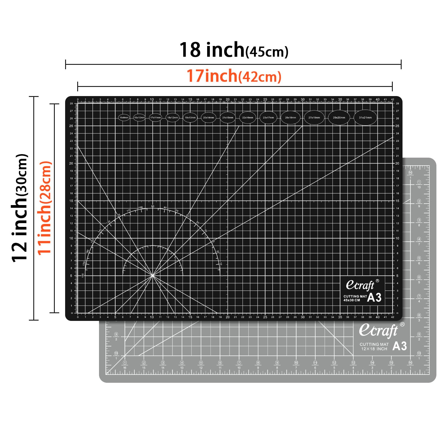 - 【Rotary Mat Size】Accurate cutting double sided, both inches and metric gridlines & angles.Mat size: 18 x 12inches(45 x 30cm), Grid size: 17 x 11inches(42 x 28cm),with easy-to-read measuring grids and 30, 45, and 60-degree bias lines that make angle cutting easy.